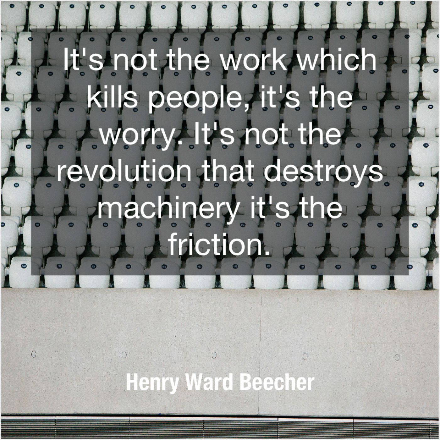 Henry Ward Beecher Henry Ward Beecher – It’s not the work which… May 31, 2019 admin “It’s not the work which kills people, it’s the worry. It’s not the revolution that destroys machinery it’s the friction.”-Henry Ward Beecher