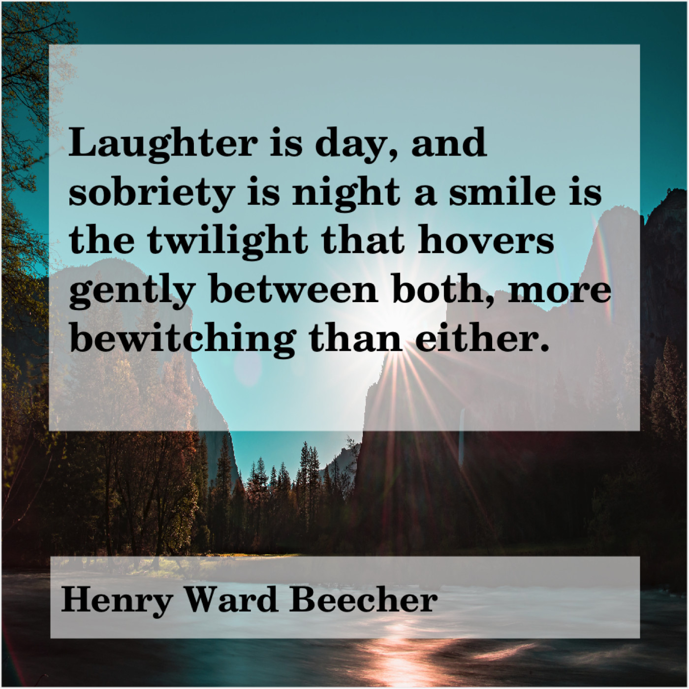 Henry Ward Beecher Henry Ward Beecher – Laughter is day, and sobriety… October 1, 2019 admin “Laughter is day, and sobriety is night a smile is the twilight that hovers gently between both, more bewitching than either.”-Henry Ward Beecher