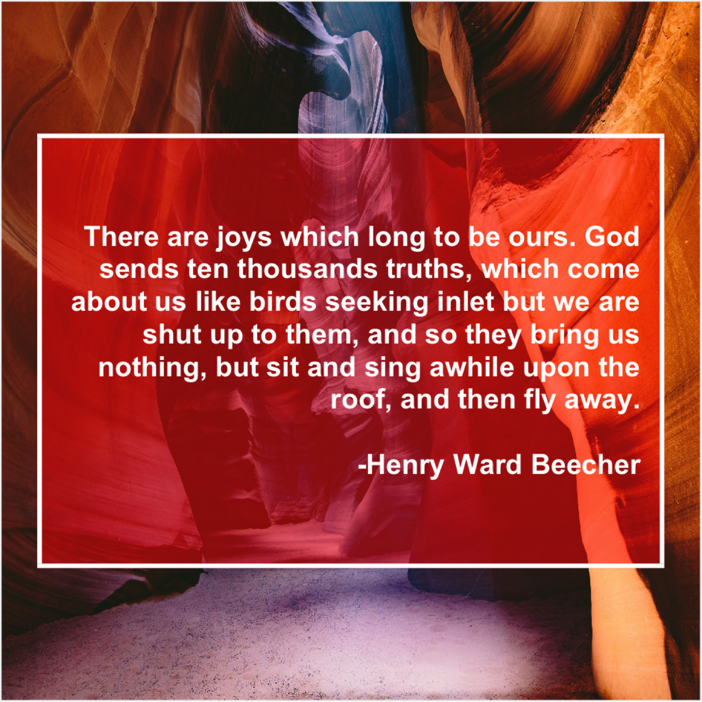 “There are joys which long to be ours. God sends ten thousands truths, which come about us like birds seeking inlet but we are shut up to them, and so they bring us nothing, but sit and sing awhile upon the roof, and then fly away.”