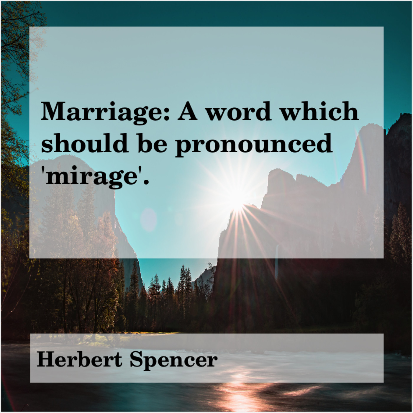 Herbert Spencer Herbert Spencer – Marriage: A word which should… April 30, 2019 admin “Marriage: A word which should be pronounced ‘mirage’.”-Herbert Spencer