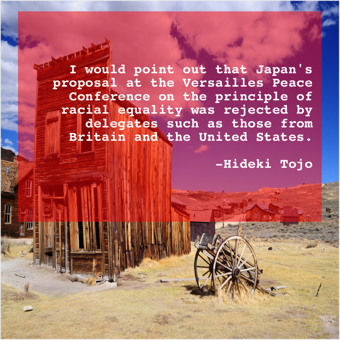 Hideki Tojo Hideki Tojo – I would point out that… October 22, 2019 admin “I would point out that Japan’s proposal at the Versailles Peace Conference on the principle of racial equality was rejected by delegates such as those from Britain and the United States.”-Hideki Tojo