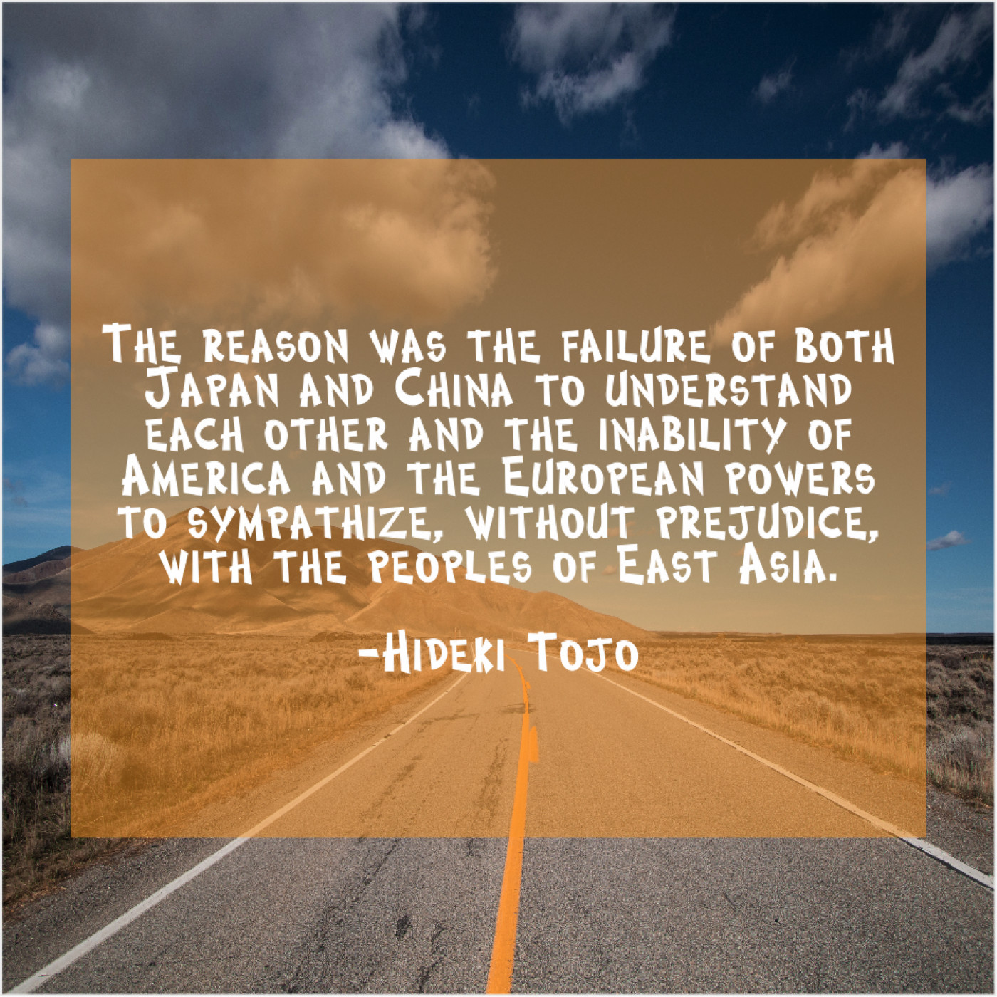 Hideki Tojo Hideki Tojo – The reason was the failure… March 5, 2019 admin “The reason was the failure of both Japan and China to understand each other and the inability of America and the European powers to sympathize, without prejudice, with the peoples of East Asia.”-Hideki Tojo