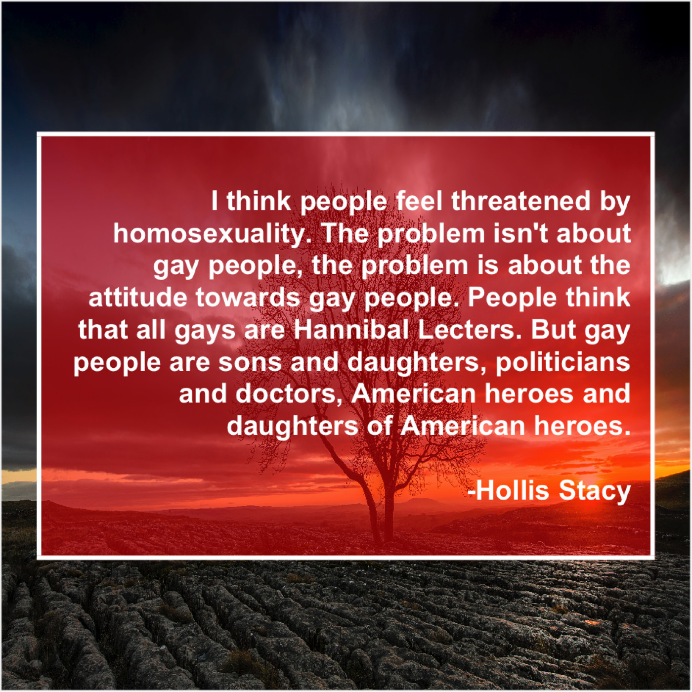 “I think people feel threatened by homosexuality. The problem isn’t about gay people, the problem is about the attitude towards gay people. People think that all gays are Hannibal Lecters. But gay people are sons and daughters, politicians and doctors, American heroes and daughters of American heroes.”