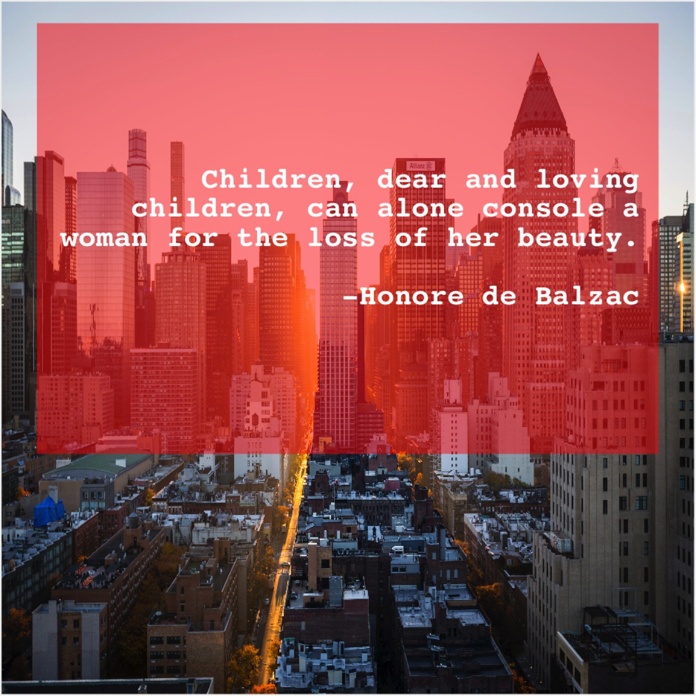 Honore de Balzac Honore de Balzac – Children, dear and loving children… November 22, 2018 admin “Children, dear and loving children, can alone console a woman for the loss of her beauty.”-Honore de Balzac