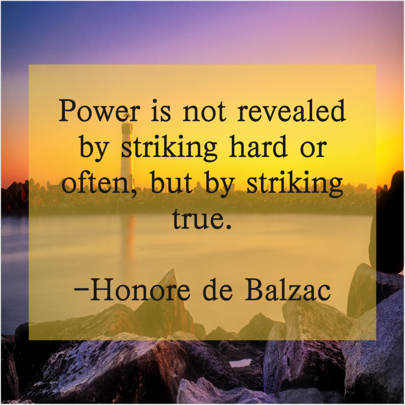 Honore de Balzac Honore de Balzac – Power is not revealed by… November 29, 2018 admin “Power is not revealed by striking hard or often, but by striking true.”-Honore de Balzac