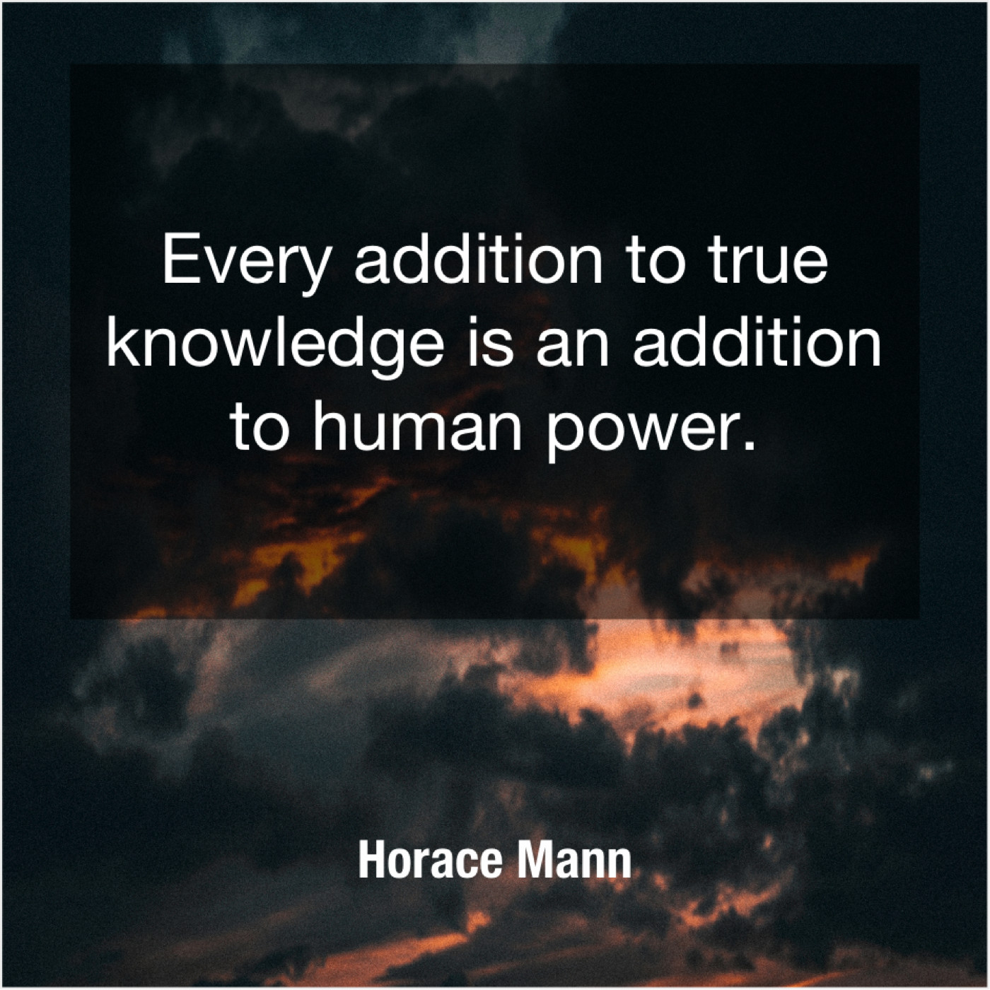 Horace Mann Horace Mann – Every addition to true knowledge… September 18, 2019 admin “Every addition to true knowledge is an addition to human power.”-Horace Mann