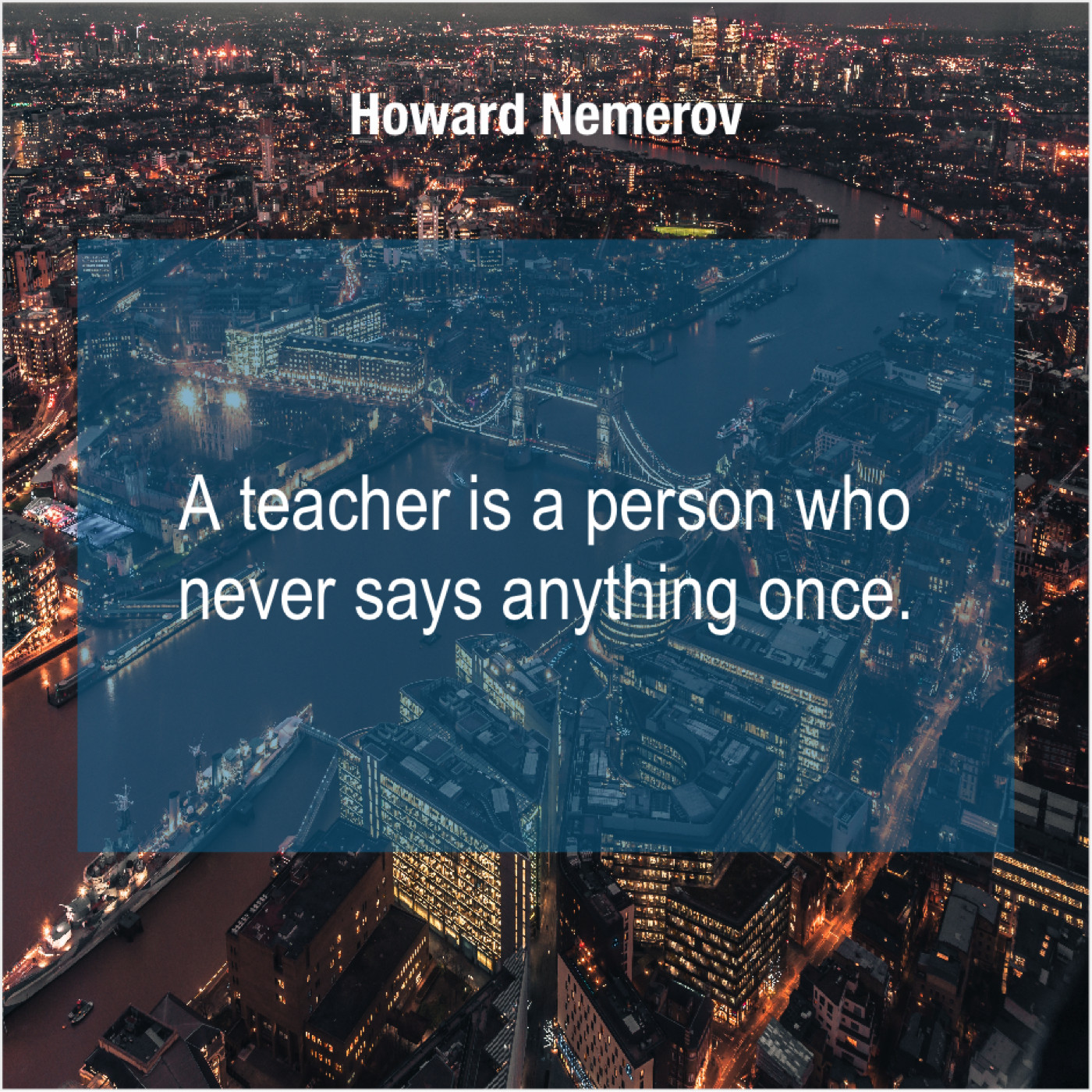 Howard Nemerov Howard Nemerov – A teacher is a person… May 9, 2019 admin “A teacher is a person who never says anything once.”-Howard Nemerov