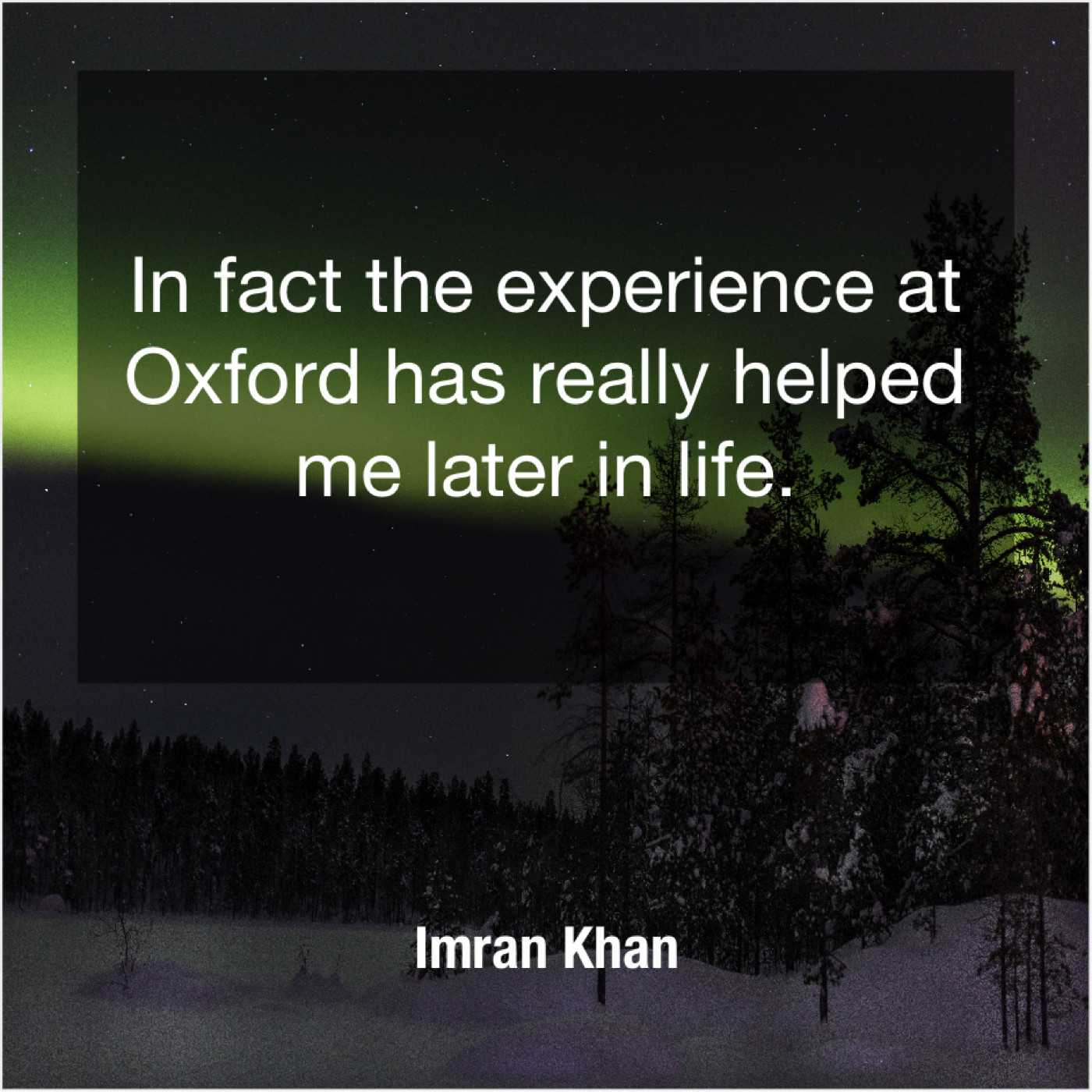 Imran Khan Imran Khan – In fact the experience at… December 23, 2018 admin “In fact the experience at Oxford has really helped me later in life.”-Imran Khan