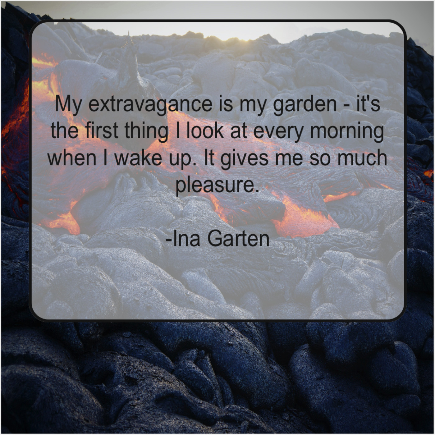 Ina Garten Ina Garten – My extravagance is my garden… June 12, 2019 admin “My extravagance is my garden – it’s the first thing I look at every morning when I wake up. It gives me so much pleasure.”-Ina Garten