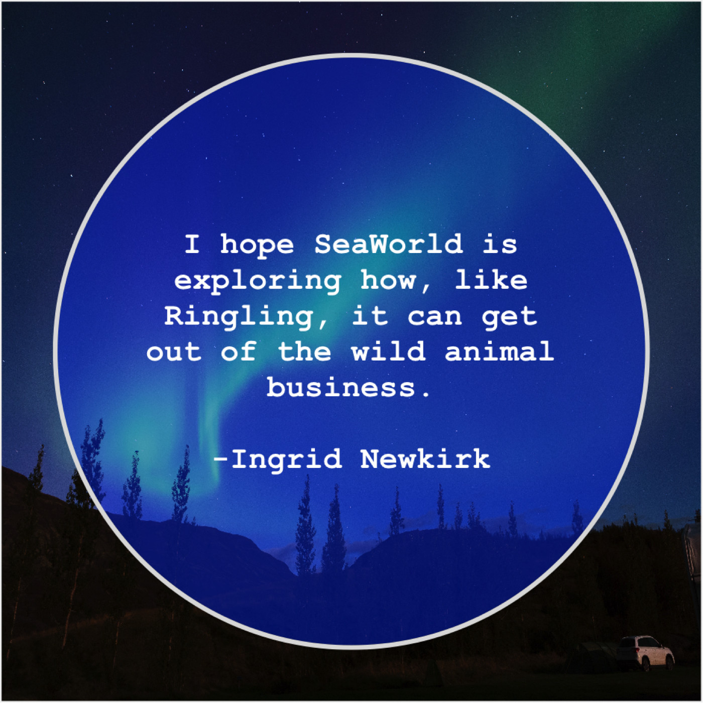 Ingrid Newkirk Ingrid Newkirk – I hope SeaWorld is exploring… October 19, 2019 admin “I hope SeaWorld is exploring how, like Ringling, it can get out of the wild animal business.”-Ingrid Newkirk