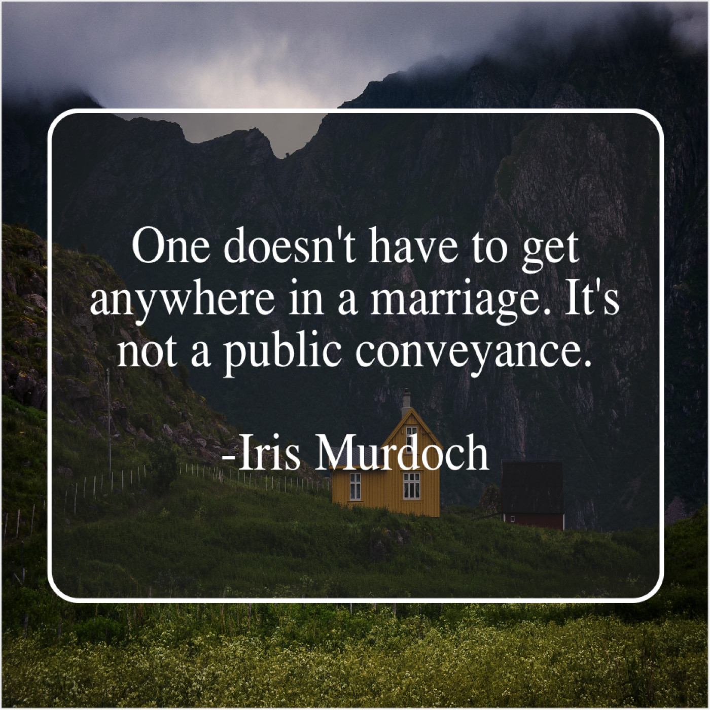 Iris Murdoch Iris Murdoch – One doesn’t have to get… March 29, 2019 admin “One doesn’t have to get anywhere in a marriage. It’s not a public conveyance.”-Iris Murdoch
