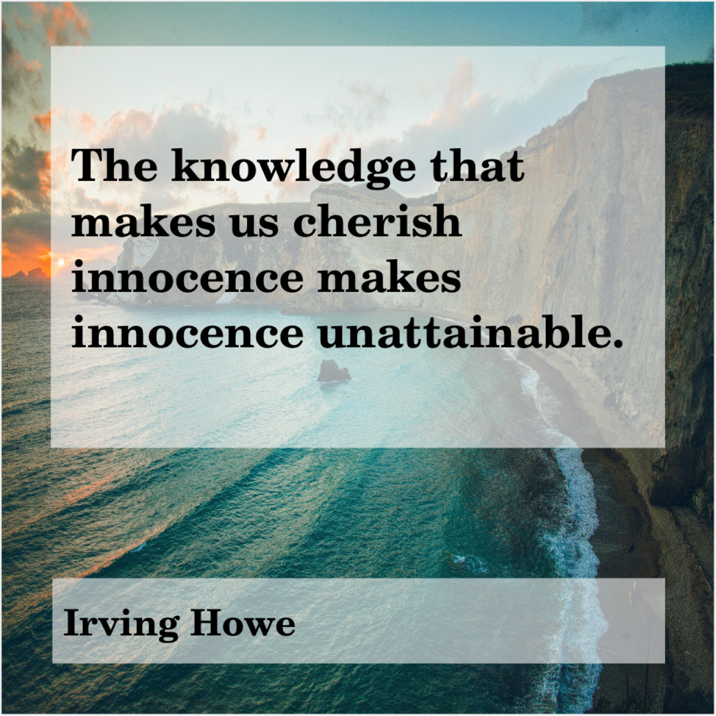 Irving Howe Irving Howe – The knowledge that makes us… October 5, 2019 admin “The knowledge that makes us cherish innocence makes innocence unattainable.”-Irving Howe