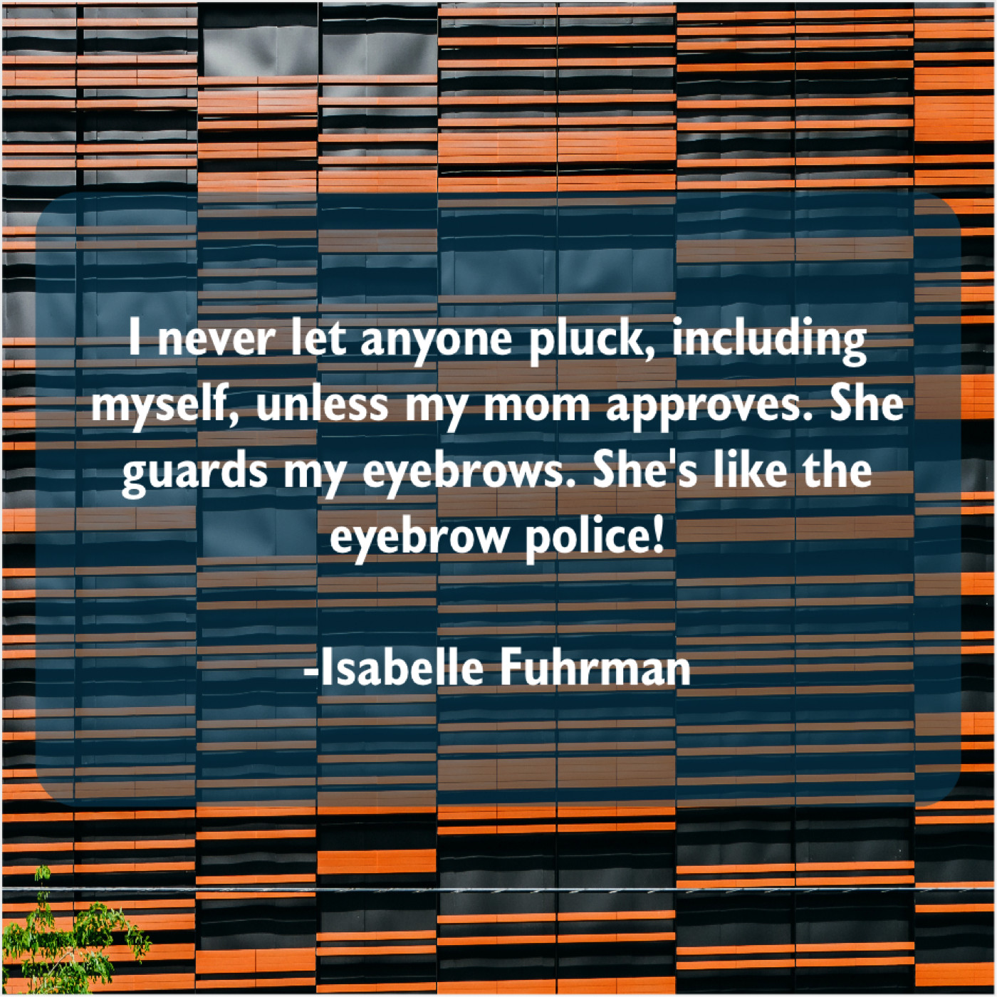 Isabelle Fuhrman Isabelle Fuhrman – I never let anyone pluck… August 20, 2019 admin “I never let anyone pluck, including myself, unless my mom approves. She guards my eyebrows. She’s like the eyebrow police!”-Isabelle Fuhrman