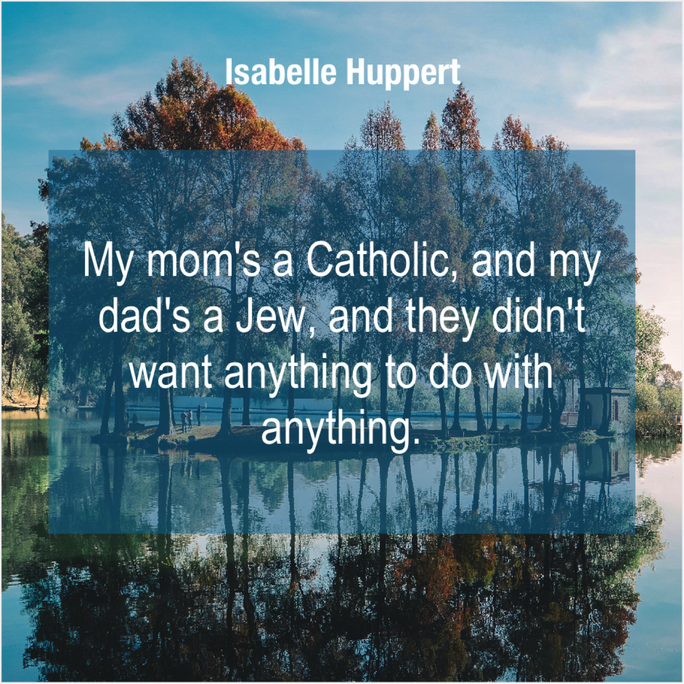 Isabelle Huppert Isabelle Huppert – My mom’s a Catholic, and… September 25, 2019 admin “My mom’s a Catholic, and my dad’s a Jew, and they didn’t want anything to do with anything.”-Isabelle Huppert