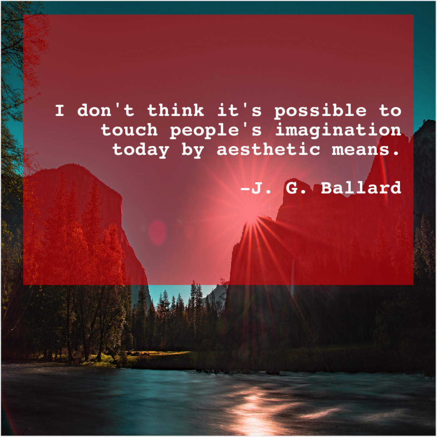 J. G. Ballard J. G. Ballard – I don’t think it’s possible… April 6, 2019 admin “I don’t think it’s possible to touch people’s imagination today by aesthetic means.”-J. G. Ballard