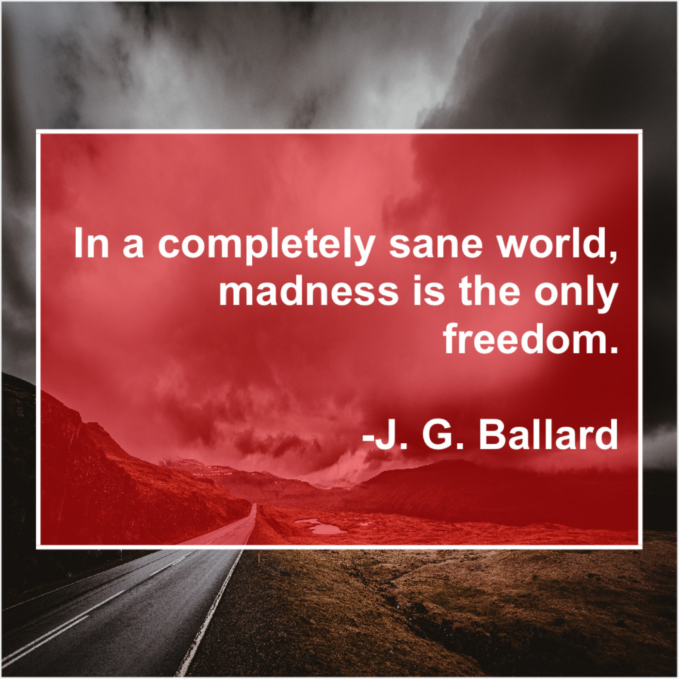 J. G. Ballard J. G. Ballard – In a completely sane world… January 9, 2019 admin “In a completely sane world, madness is the only freedom.”-J. G. Ballard