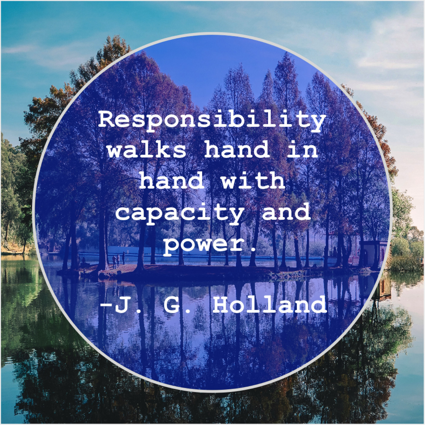 J. G. Holland J. G. Holland – Responsibility walks hand in hand… May 24, 2019 admin “Responsibility walks hand in hand with capacity and power.”-J. G. Holland