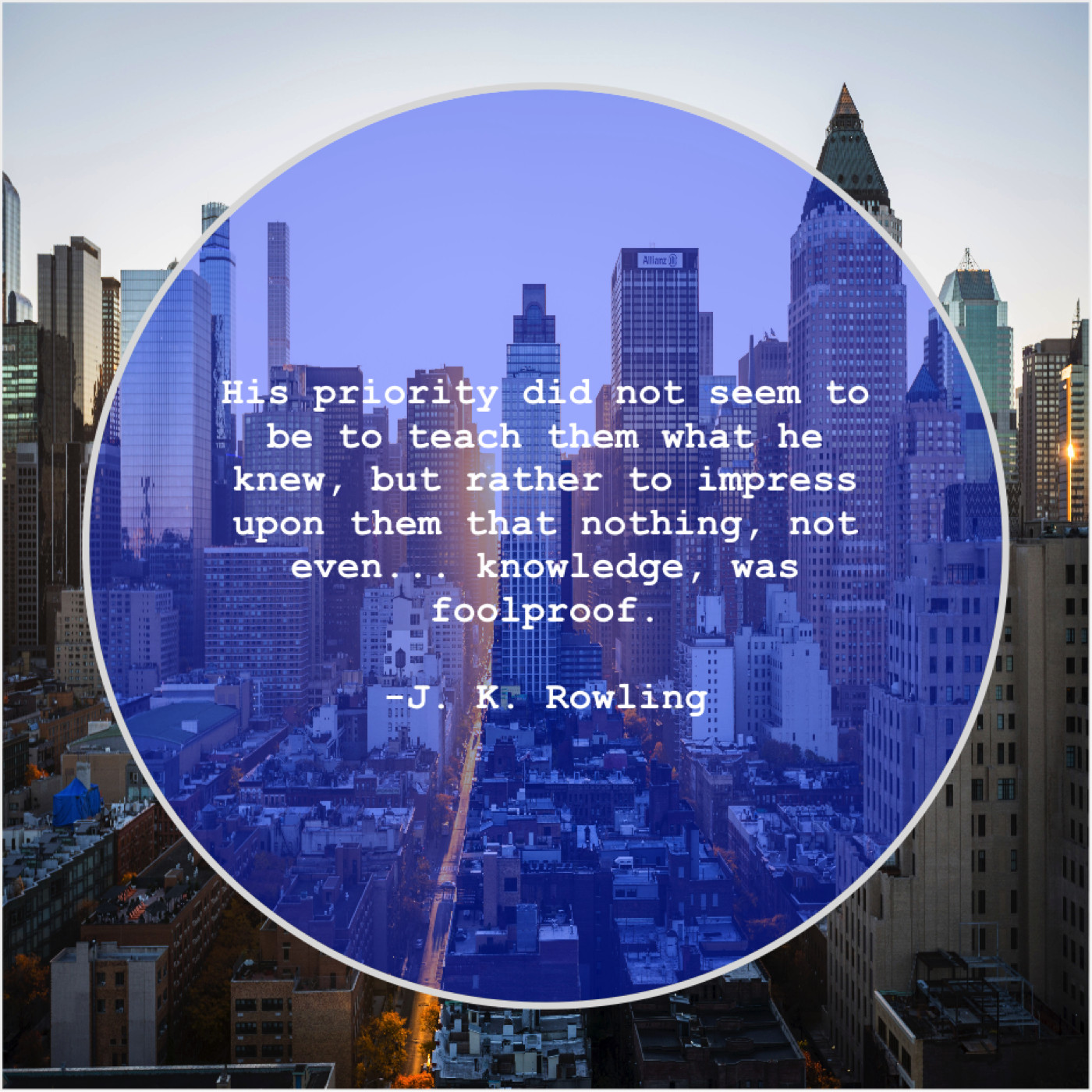 J. K. Rowling J. K. Rowling – His priority did not seem… August 10, 2019 admin “His priority did not seem to be to teach them what he knew, but rather to impress upon them that nothing, not even… knowledge, was foolproof.”-J. K. Rowling