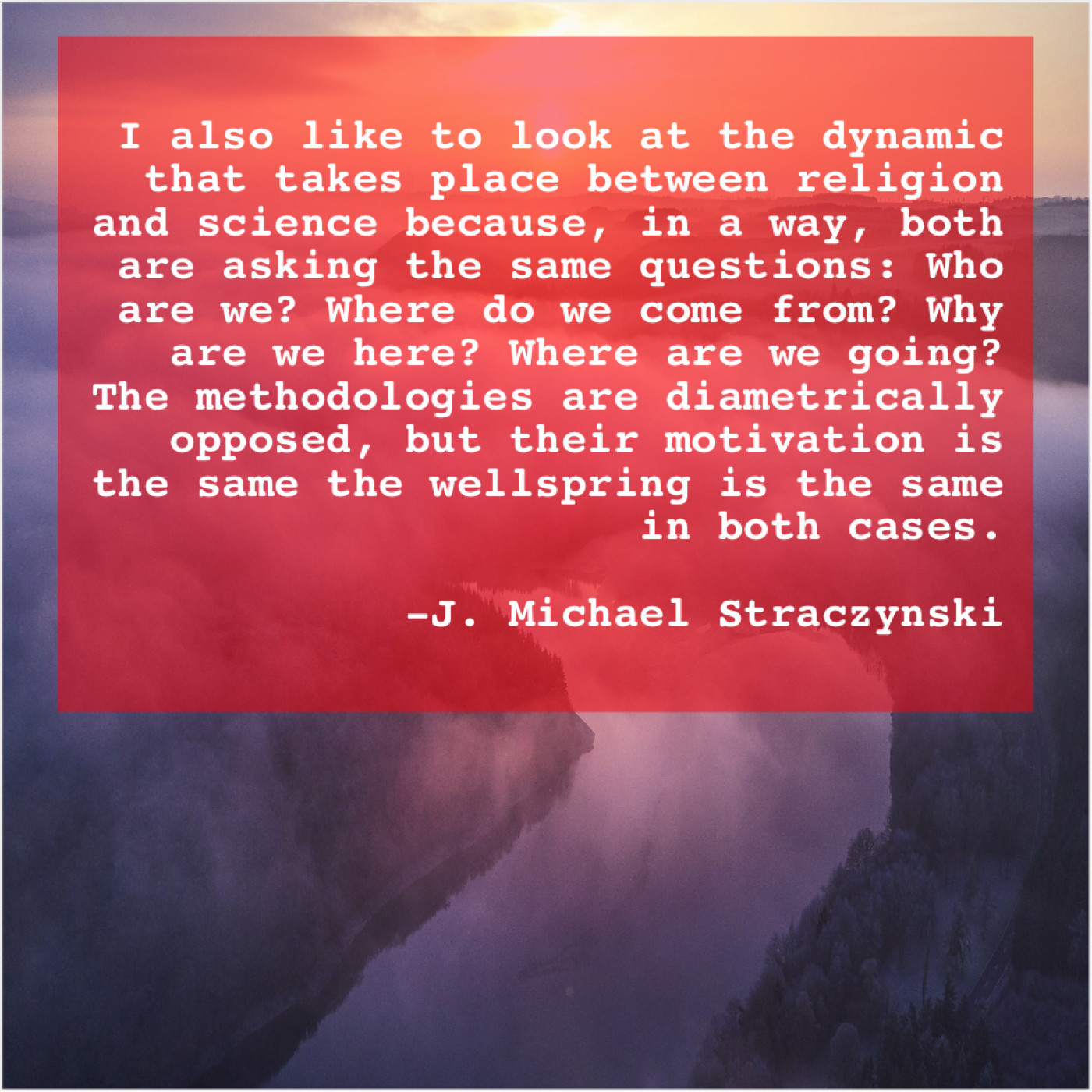“I also like to look at the dynamic that takes place between religion and science because, in a way, both are asking the same questions: Who are we? Where do we come from? Why are we here? Where are we going? The methodologies are diametrically opposed, but their motivation is the same the wellspring is the same in both cases.”