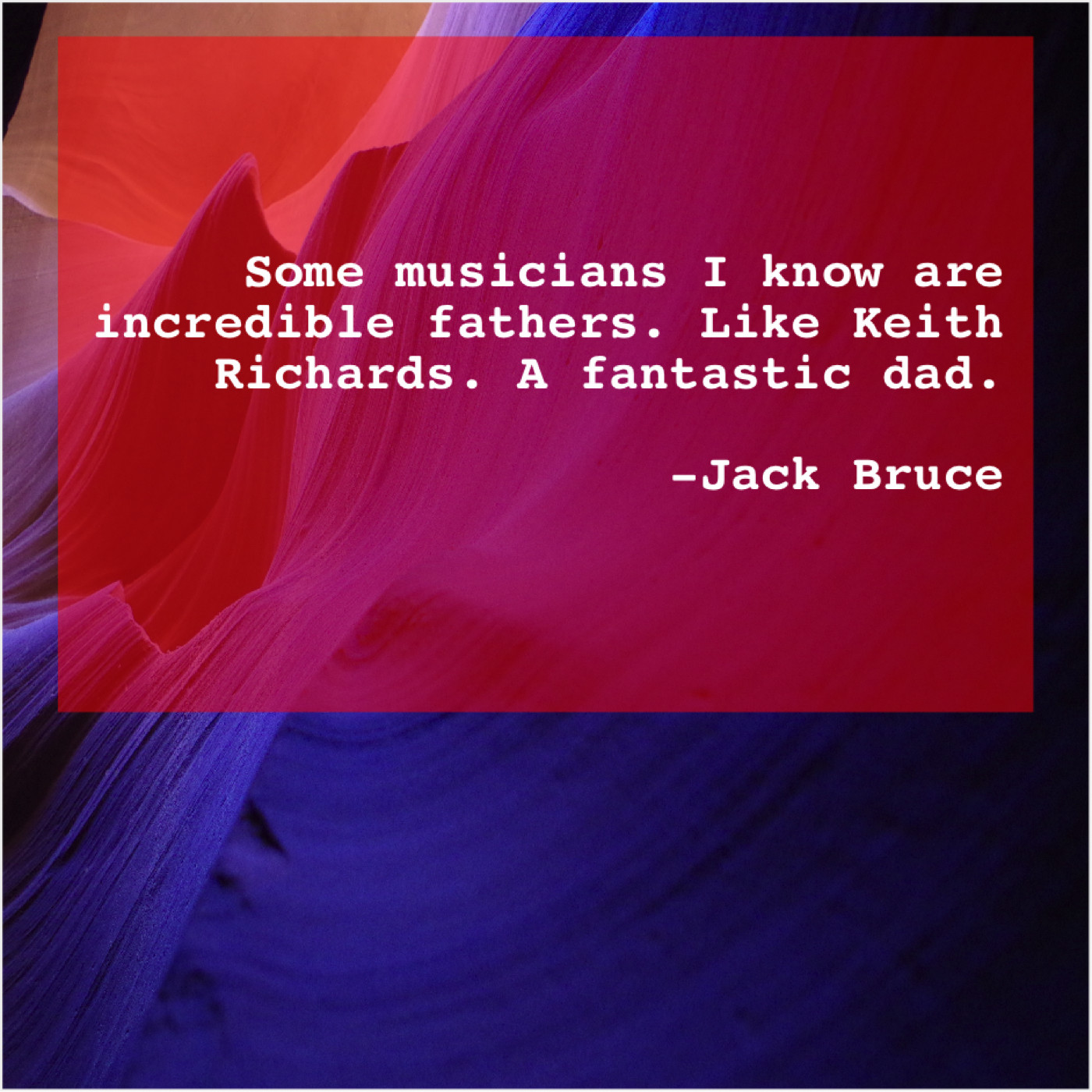Jack Bruce Jack Bruce – Some musicians I know are… July 8, 2019 admin “Some musicians I know are incredible fathers. Like Keith Richards. A fantastic dad.”-Jack Bruce