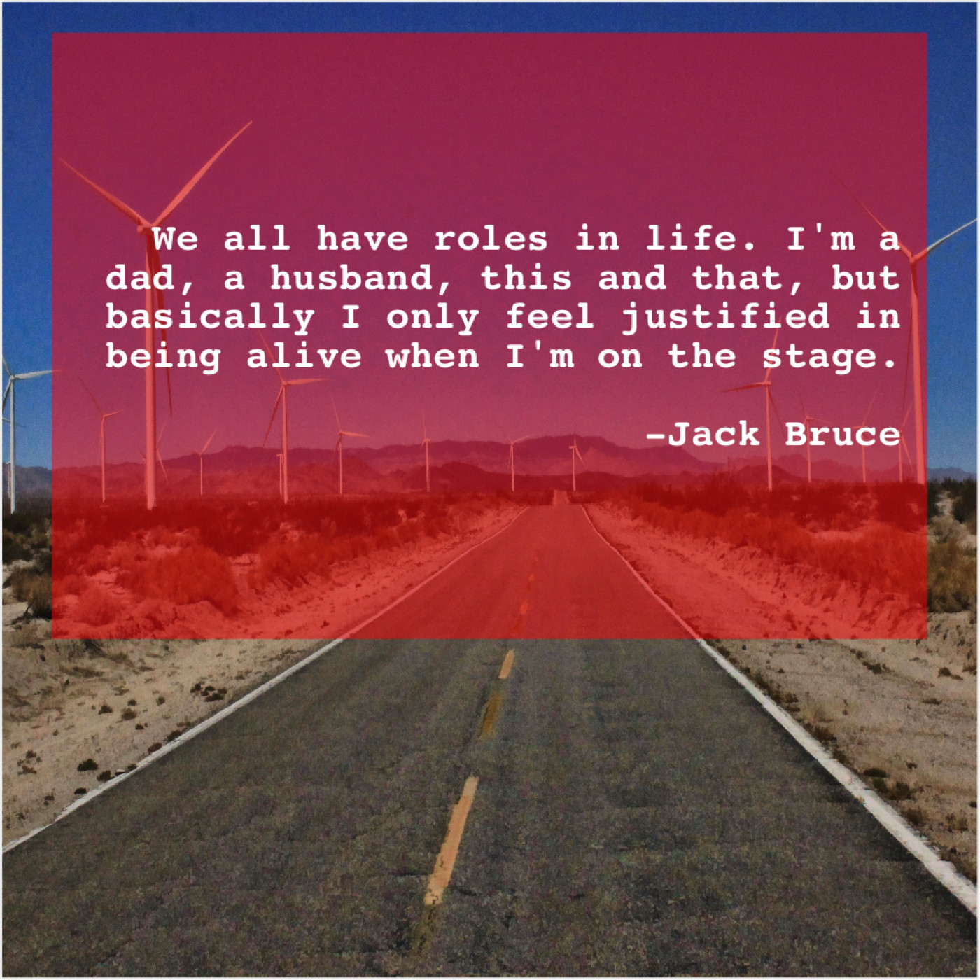 Jack Bruce Jack Bruce – We all have roles in… August 19, 2019 admin “We all have roles in life. I’m a dad, a husband, this and that, but basically I only feel justified in being alive when I’m on the stage.”-Jack Bruce