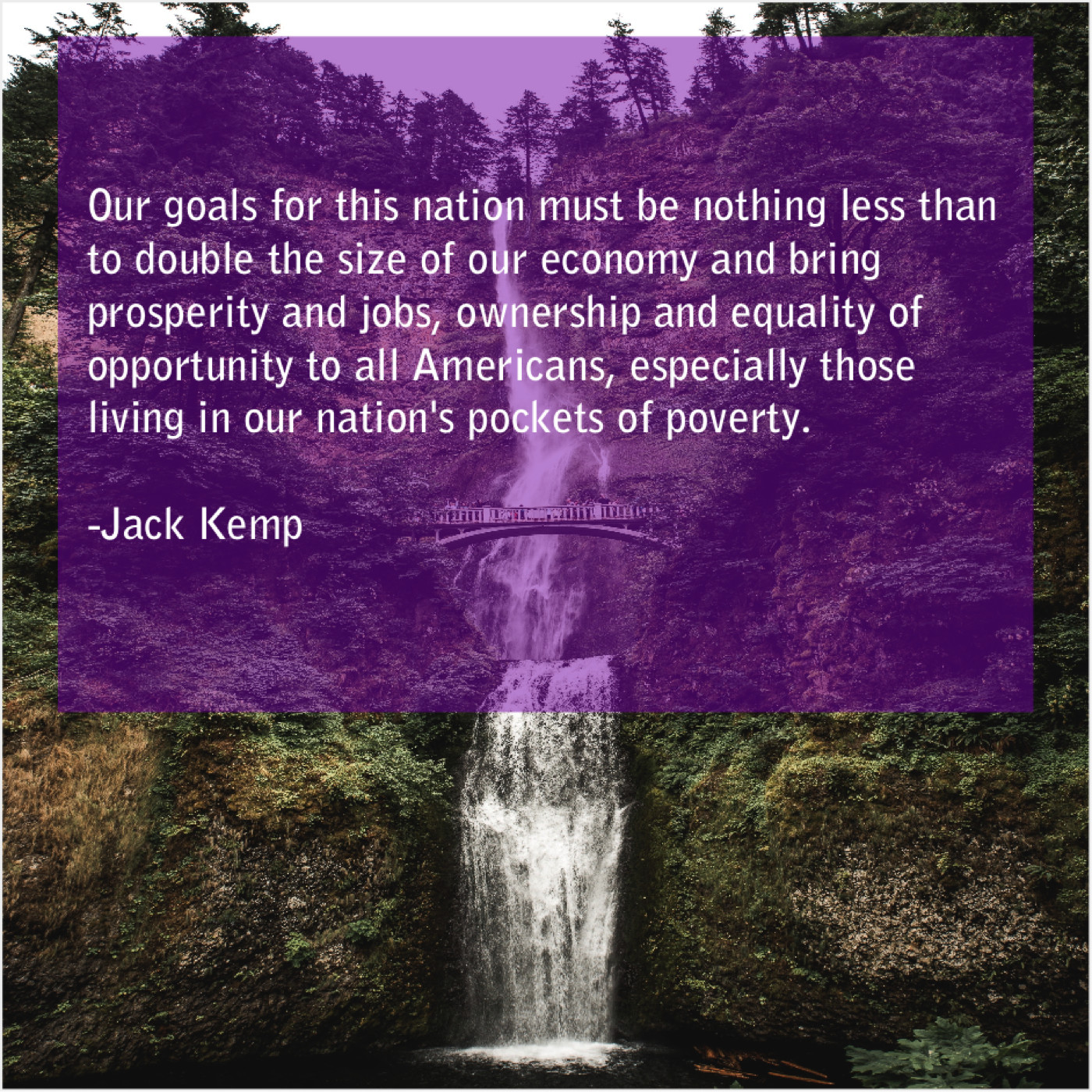 Jack Kemp Jack Kemp – Our goals for this nation… July 21, 2019 admin “Our goals for this nation must be nothing less than to double the size of our economy and bring prosperity and jobs, ownership and equality of opportunity to all Americans, especially those living in our nation’s pockets of poverty.”-Jack Kemp