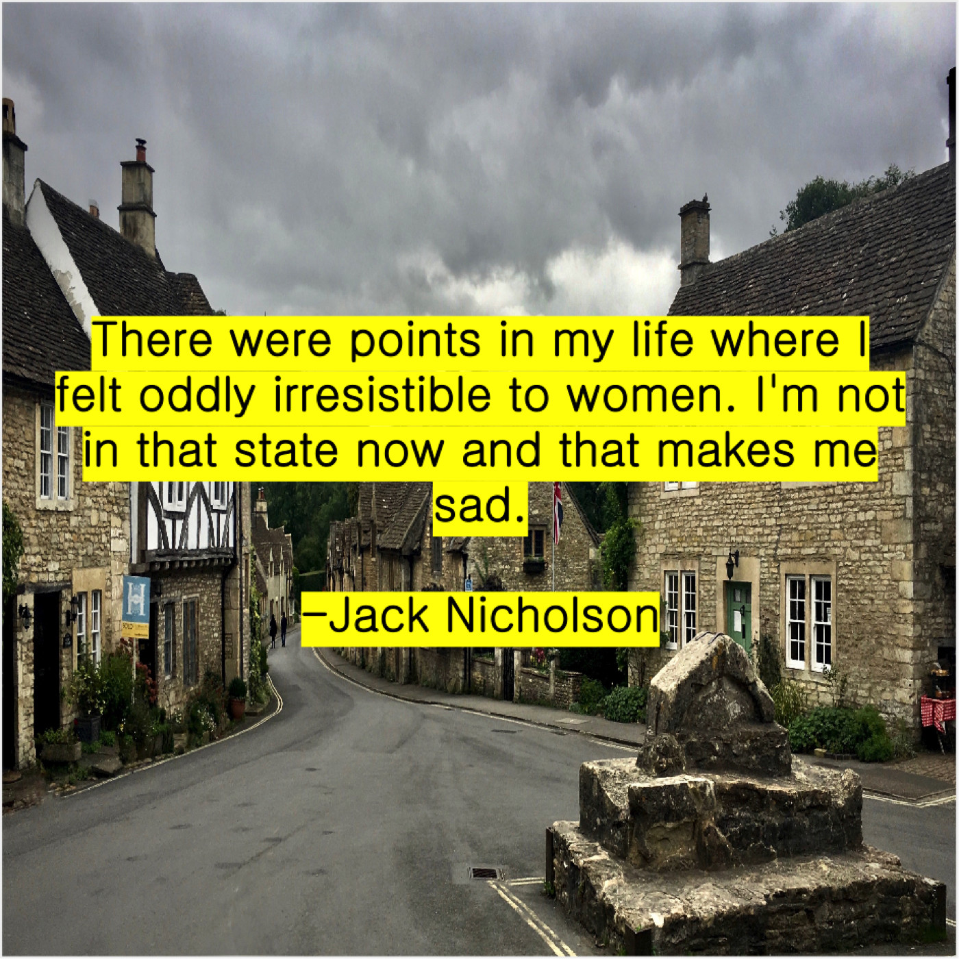 Jack Nicholson Jack Nicholson – There were points in my… August 28, 2019 admin “There were points in my life where I felt oddly irresistible to women. I’m not in that state now and that makes me sad.”-Jack Nicholson