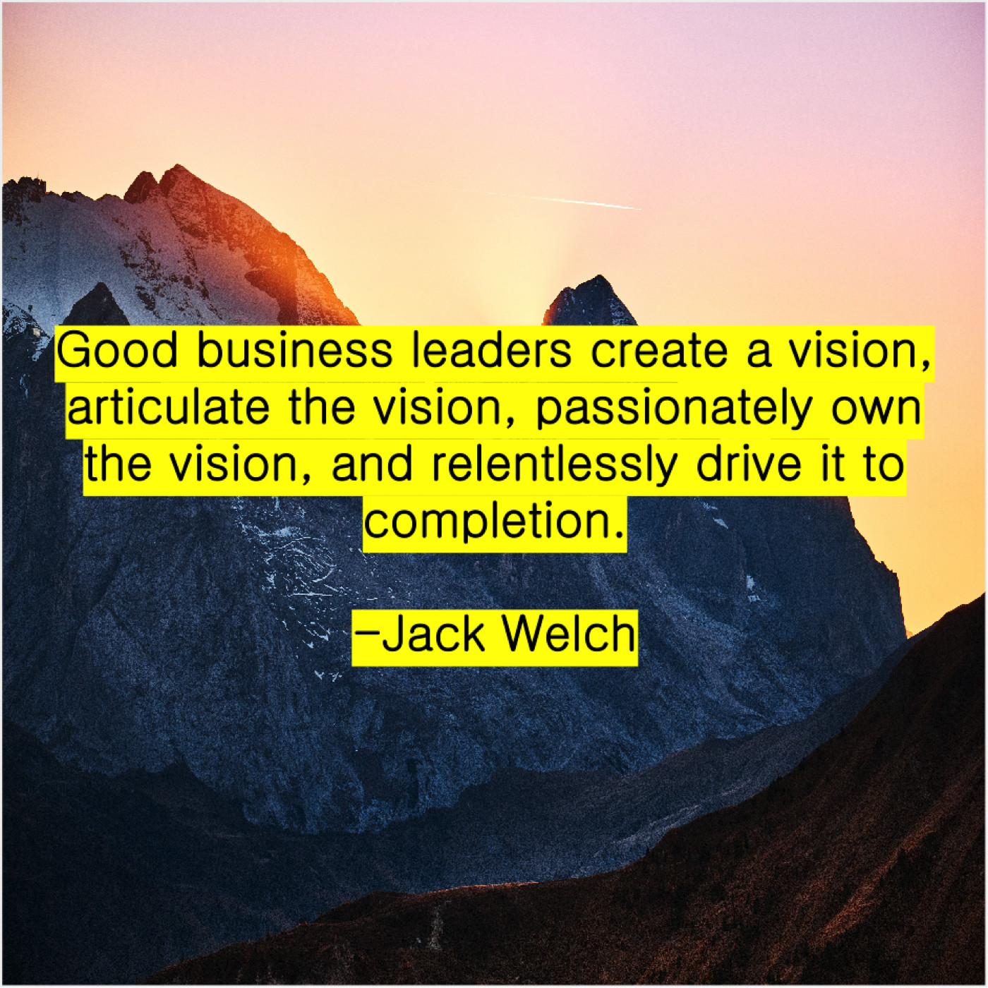 Jack Welch Jack Welch – Good business leaders create a… March 12, 2019 admin “Good business leaders create a vision, articulate the vision, passionately own the vision, and relentlessly drive it to completion.”-Jack Welch