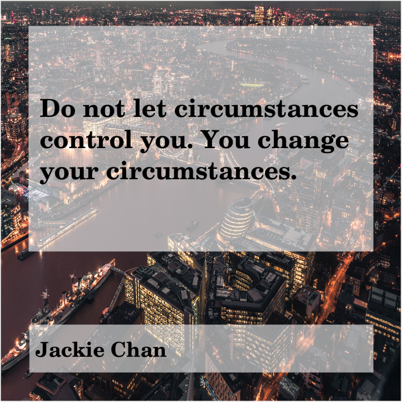 Jackie Chan Jackie Chan – Do not let circumstances control… January 19, 2019 admin “Do not let circumstances control you. You change your circumstances.”-Jackie Chan