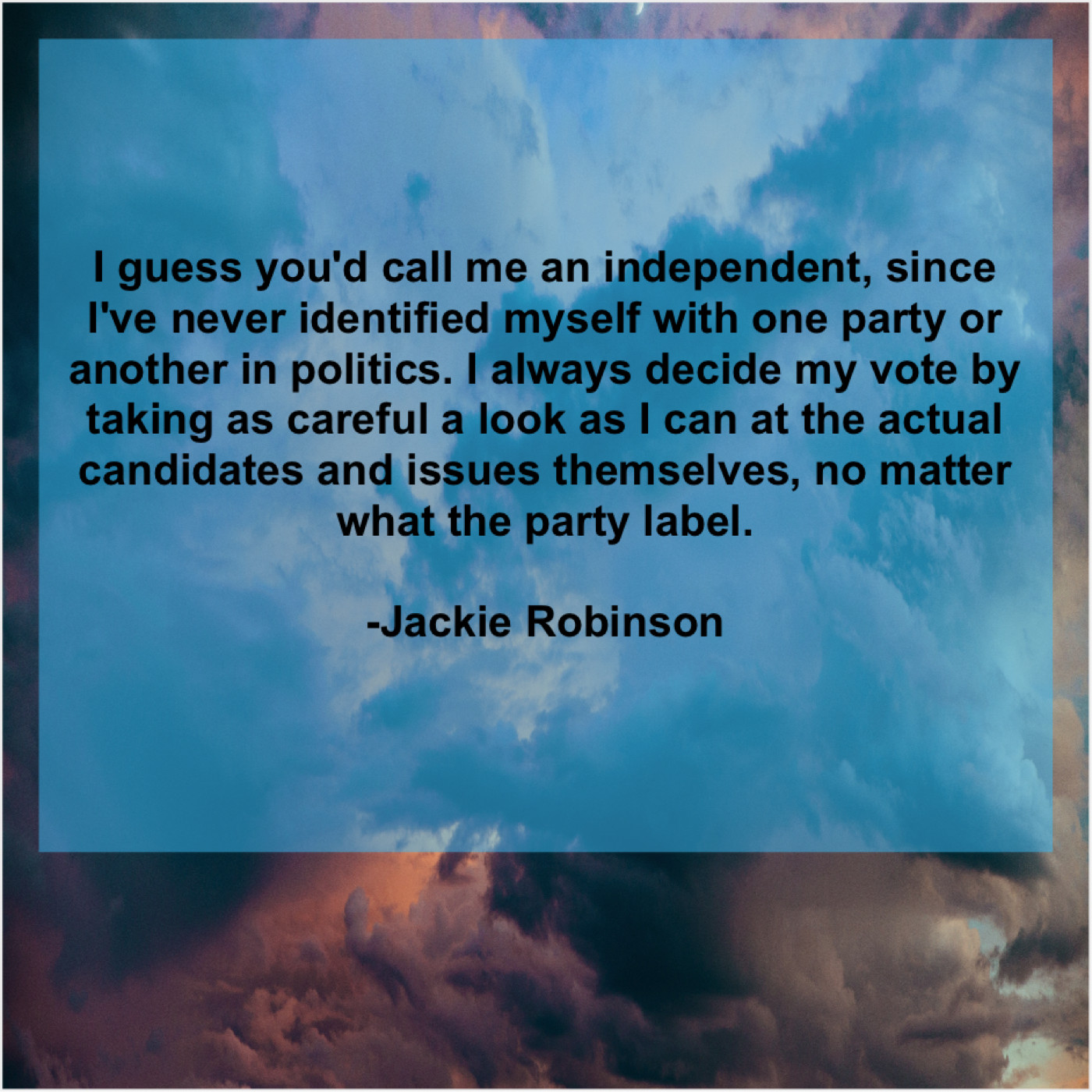 “I guess you’d call me an independent, since I’ve never identified myself with one party or another in politics. I always decide my vote by taking as careful a look as I can at the actual candidates and issues themselves, no matter what the party label.”