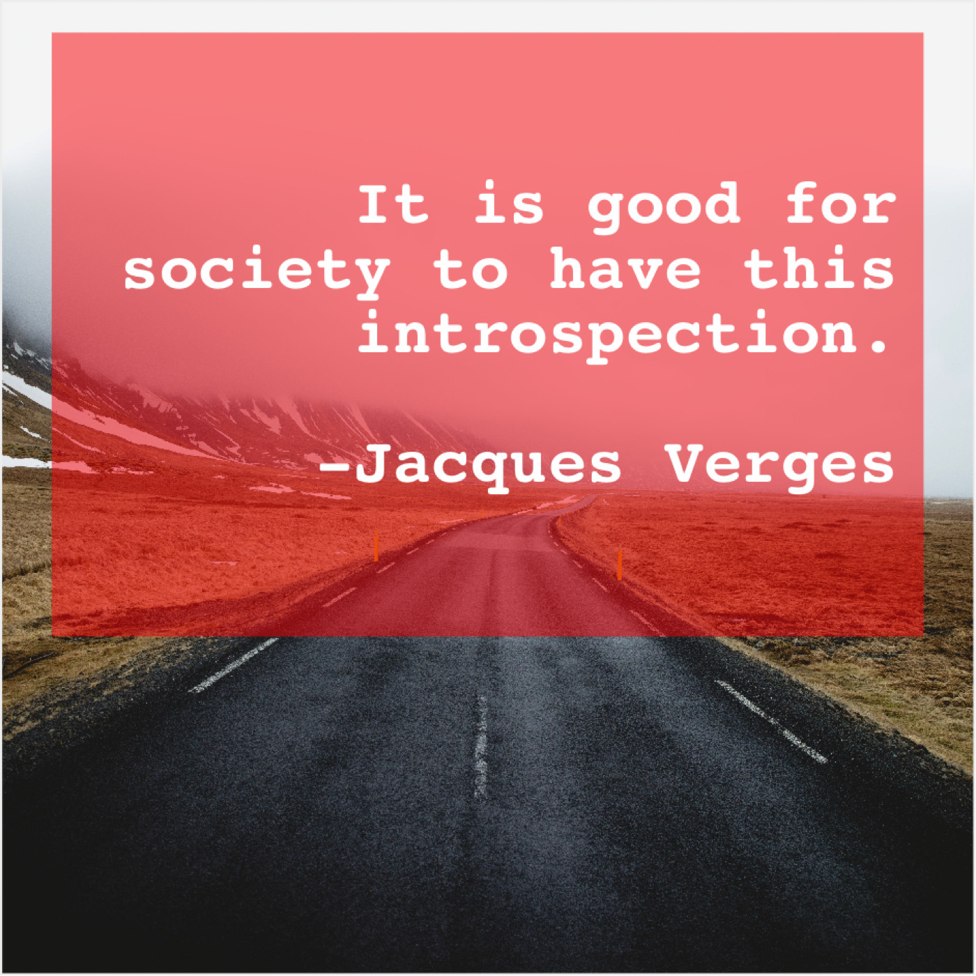 Jacques Verges Jacques Verges – It is good for society… December 3, 2018 admin “It is good for society to have this introspection.”-Jacques Verges