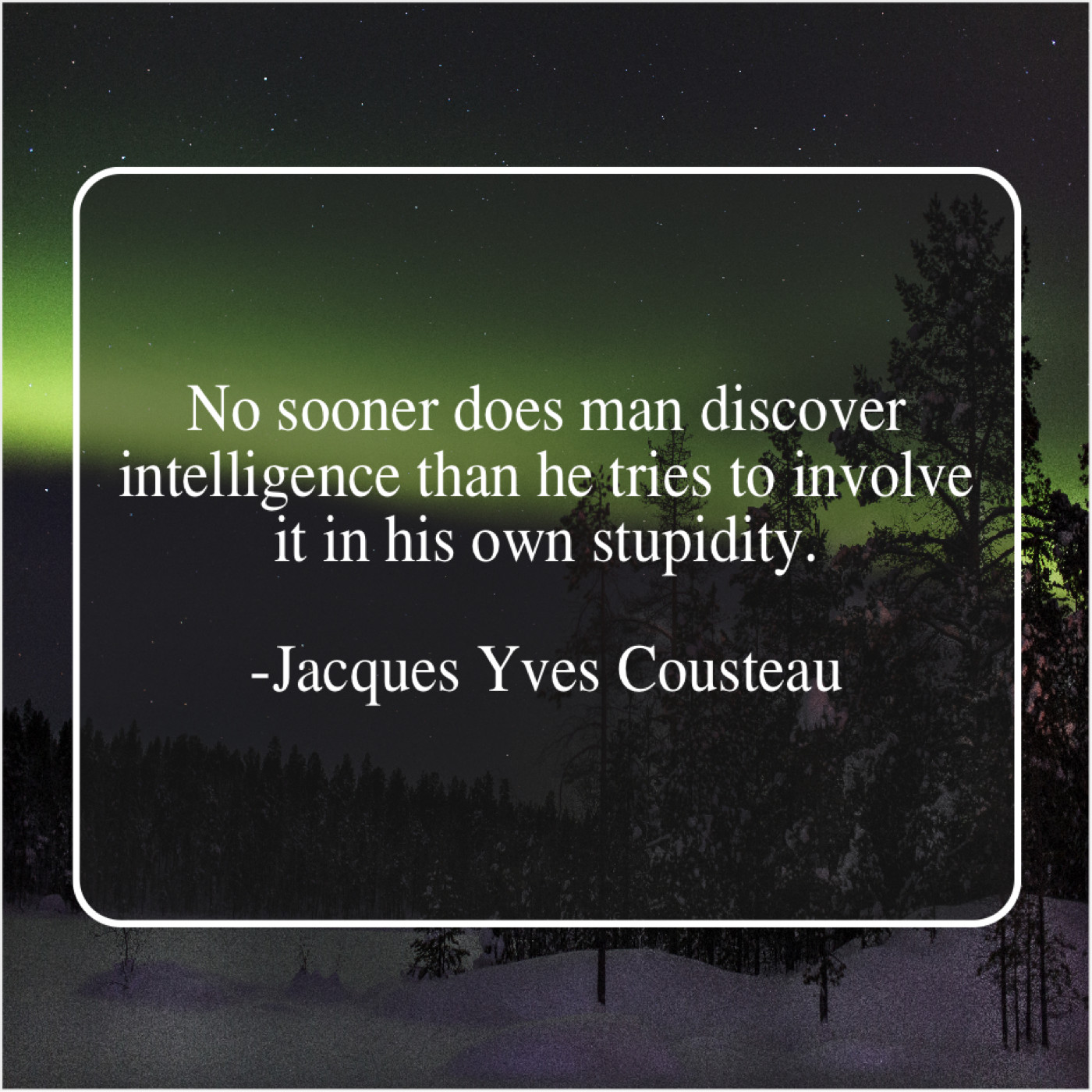 Jacques Yves Cousteau Jacques Yves Cousteau – No sooner does man discover… December 17, 2018 admin “No sooner does man discover intelligence than he tries to involve it in his own stupidity.”-Jacques Yves Cousteau