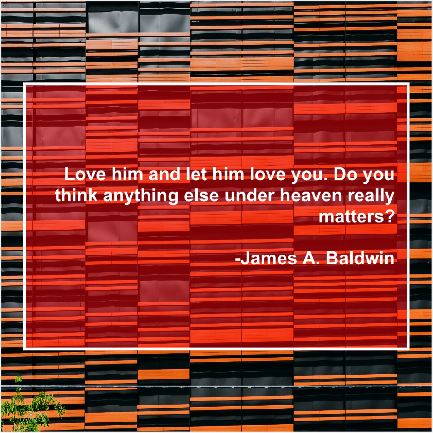 James A. Baldwin James A. Baldwin – Love him and let him… June 16, 2019 admin “Love him and let him love you. Do you think anything else under heaven really matters?”-James A. Baldwin
