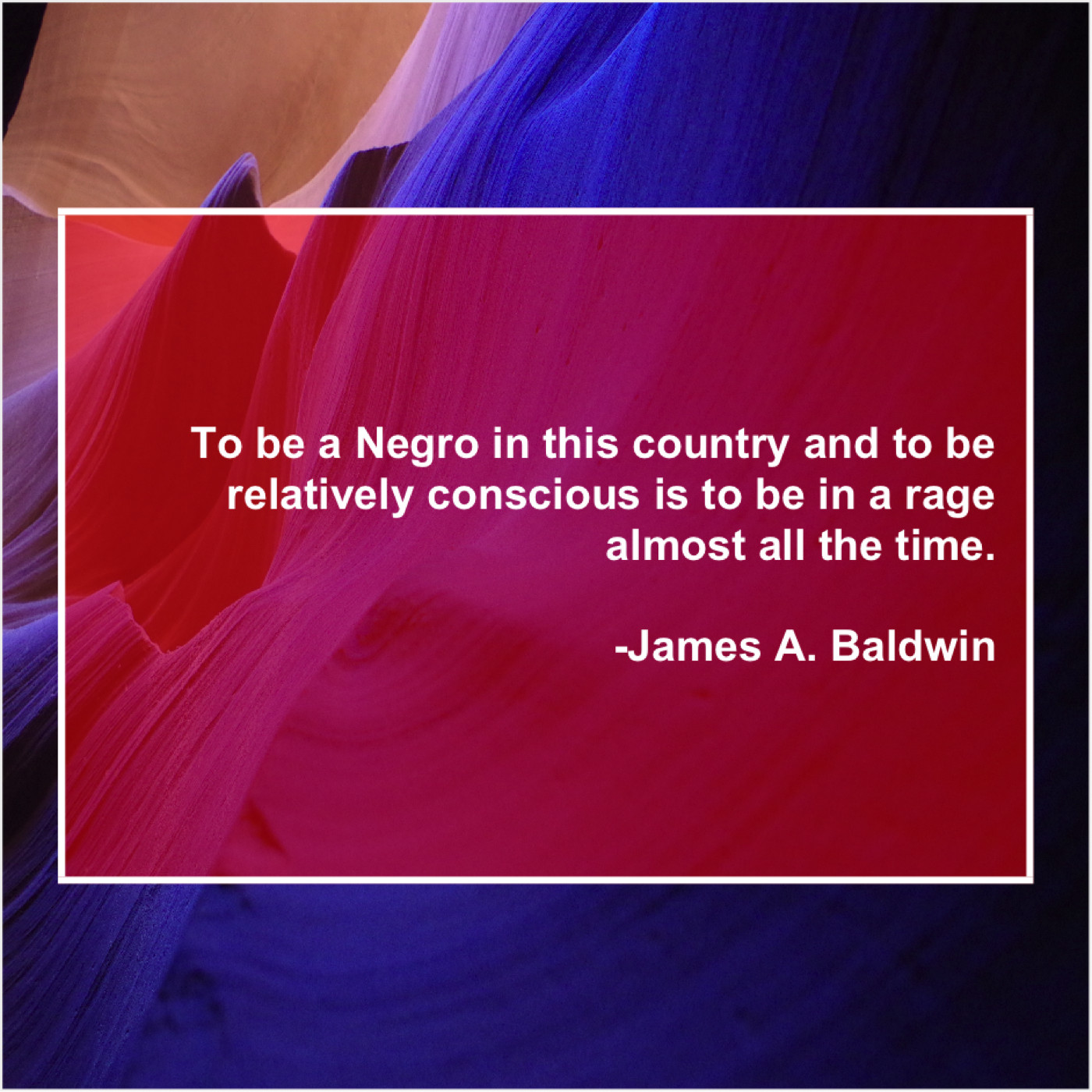 James A. Baldwin James A. Baldwin – To be a Negro in… August 29, 2019 admin “To be a Negro in this country and to be relatively conscious is to be in a rage almost all the time.”-James A. Baldwin
