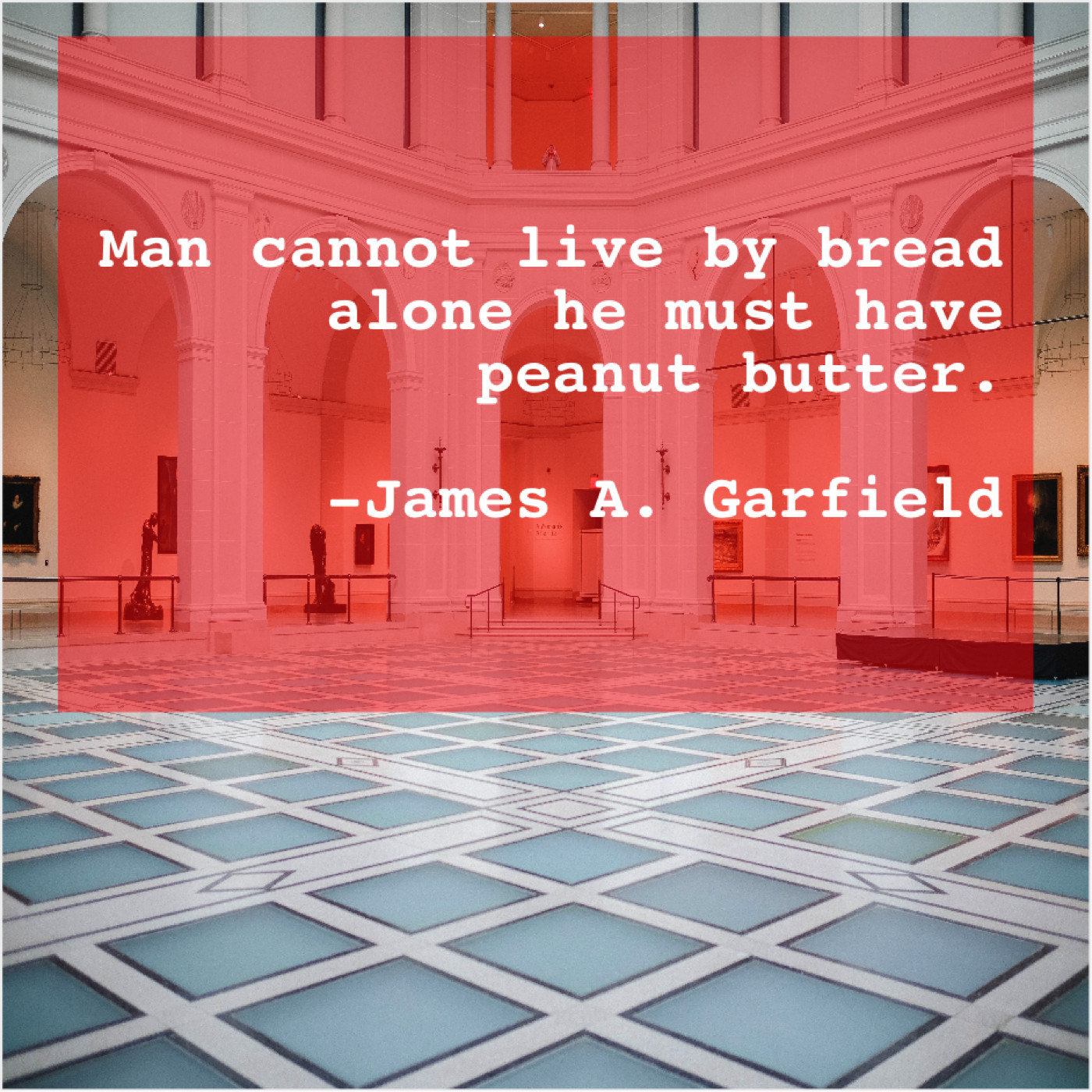 James A. Garfield James A. Garfield – Man cannot live by bread… September 12, 2019 admin “Man cannot live by bread alone he must have peanut butter.”-James A. Garfield