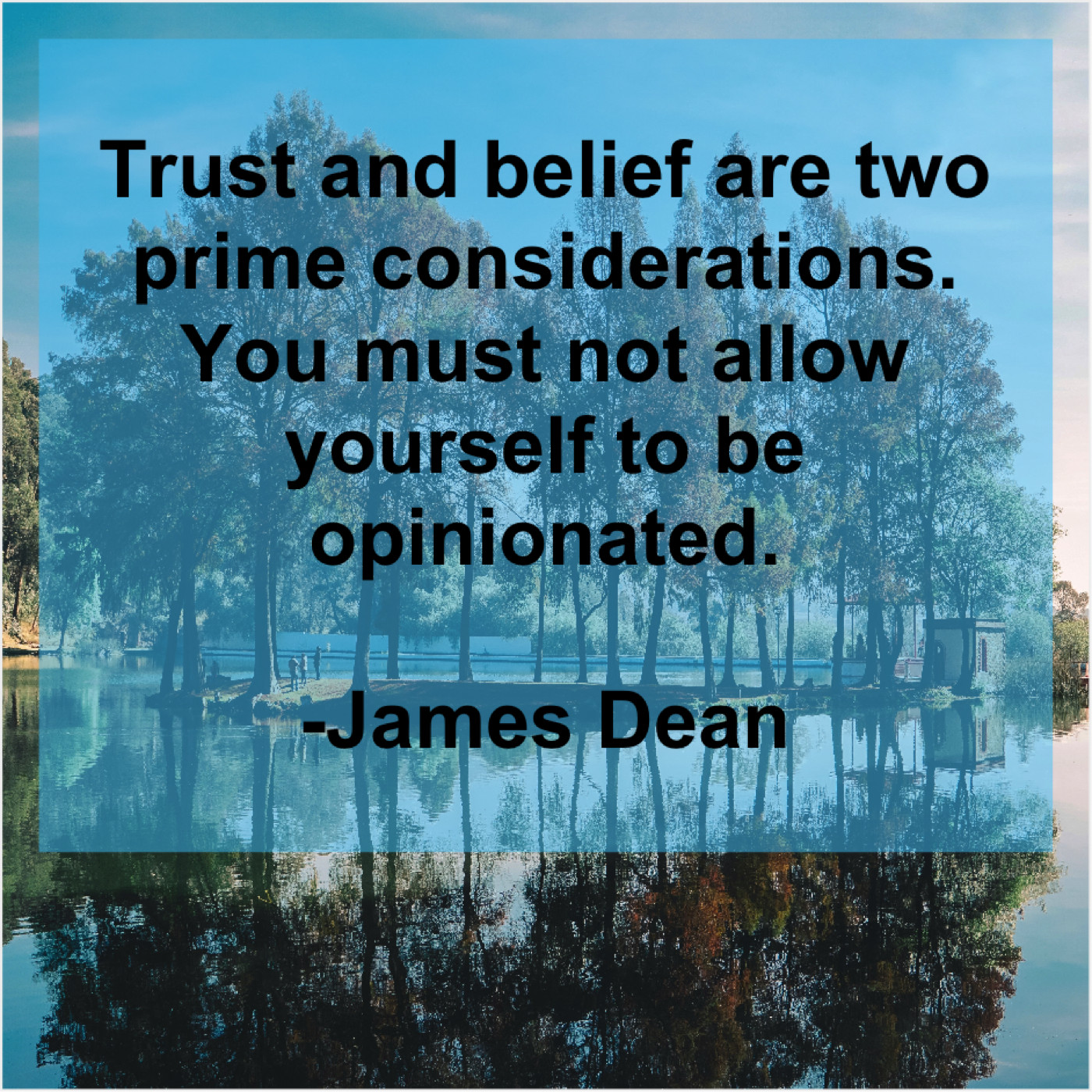 James Dean James Dean – Trust and belief are two… September 23, 2019 admin “Trust and belief are two prime considerations. You must not allow yourself to be opinionated.”-James Dean