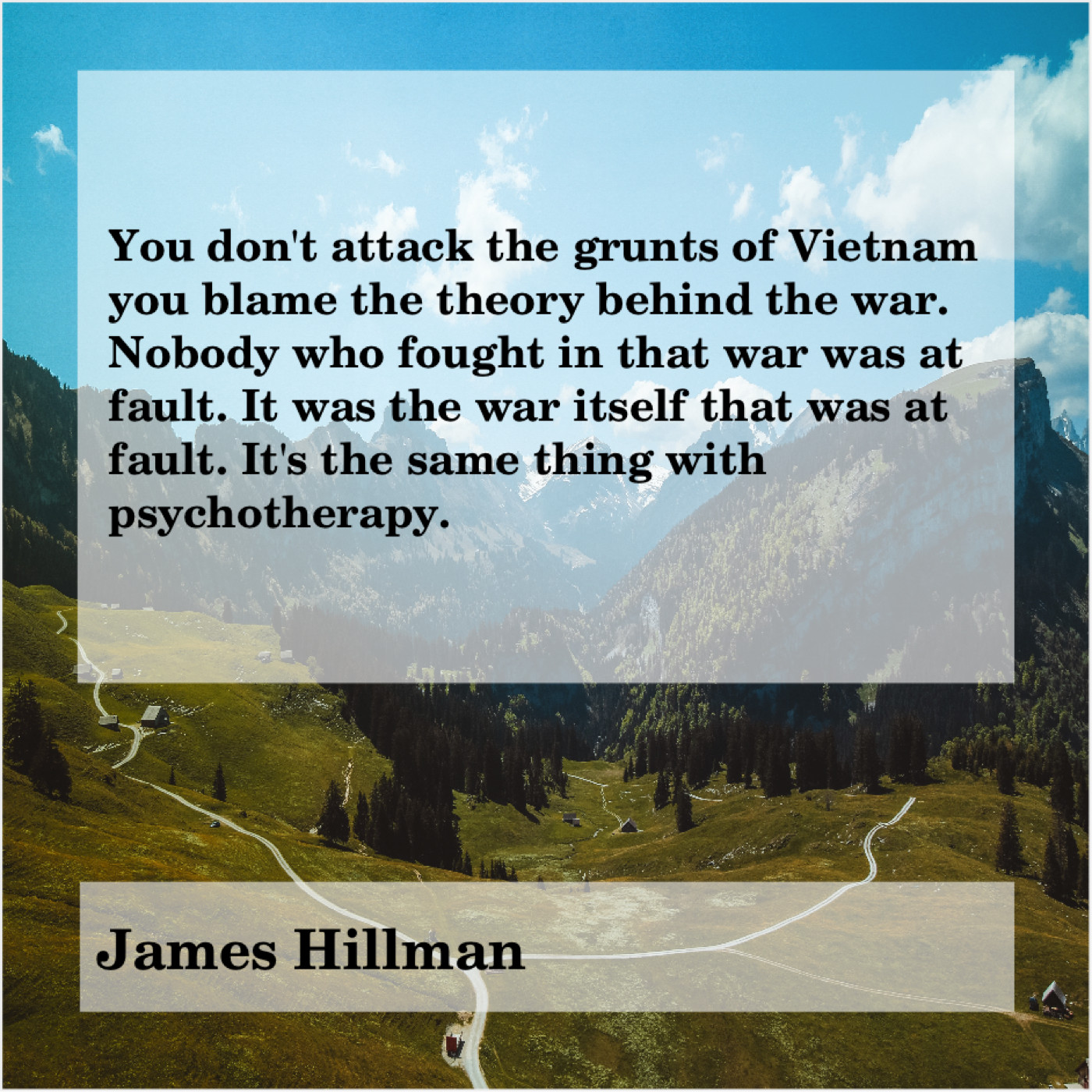 James Hillman James Hillman – You don’t attack the grunts… April 8, 2019 admin “You don’t attack the grunts of Vietnam you blame the theory behind the war. Nobody who fought in that war was at fault. It was the war itself that was at fault. It’s the same thing with psychotherapy.”-James Hillman