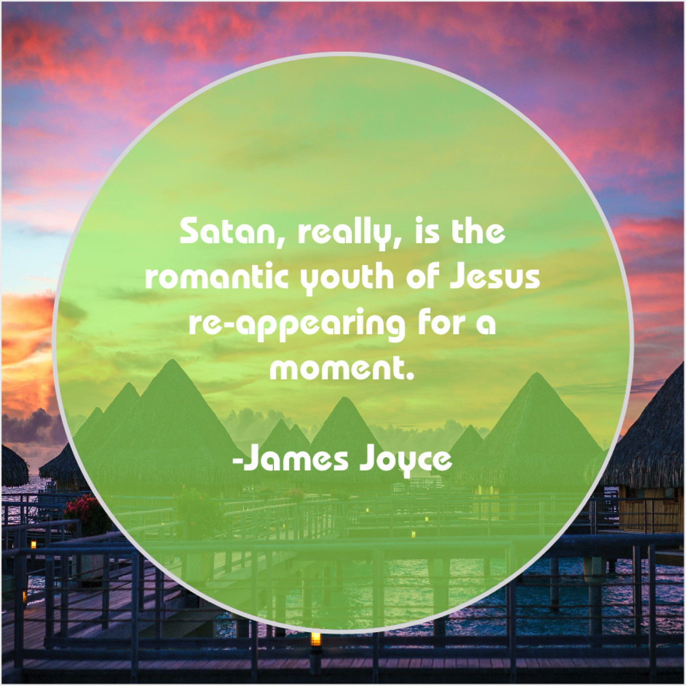 James Joyce James Joyce – Satan, really, is the romantic… September 10, 2019 admin “Satan, really, is the romantic youth of Jesus re-appearing for a moment.”-James Joyce