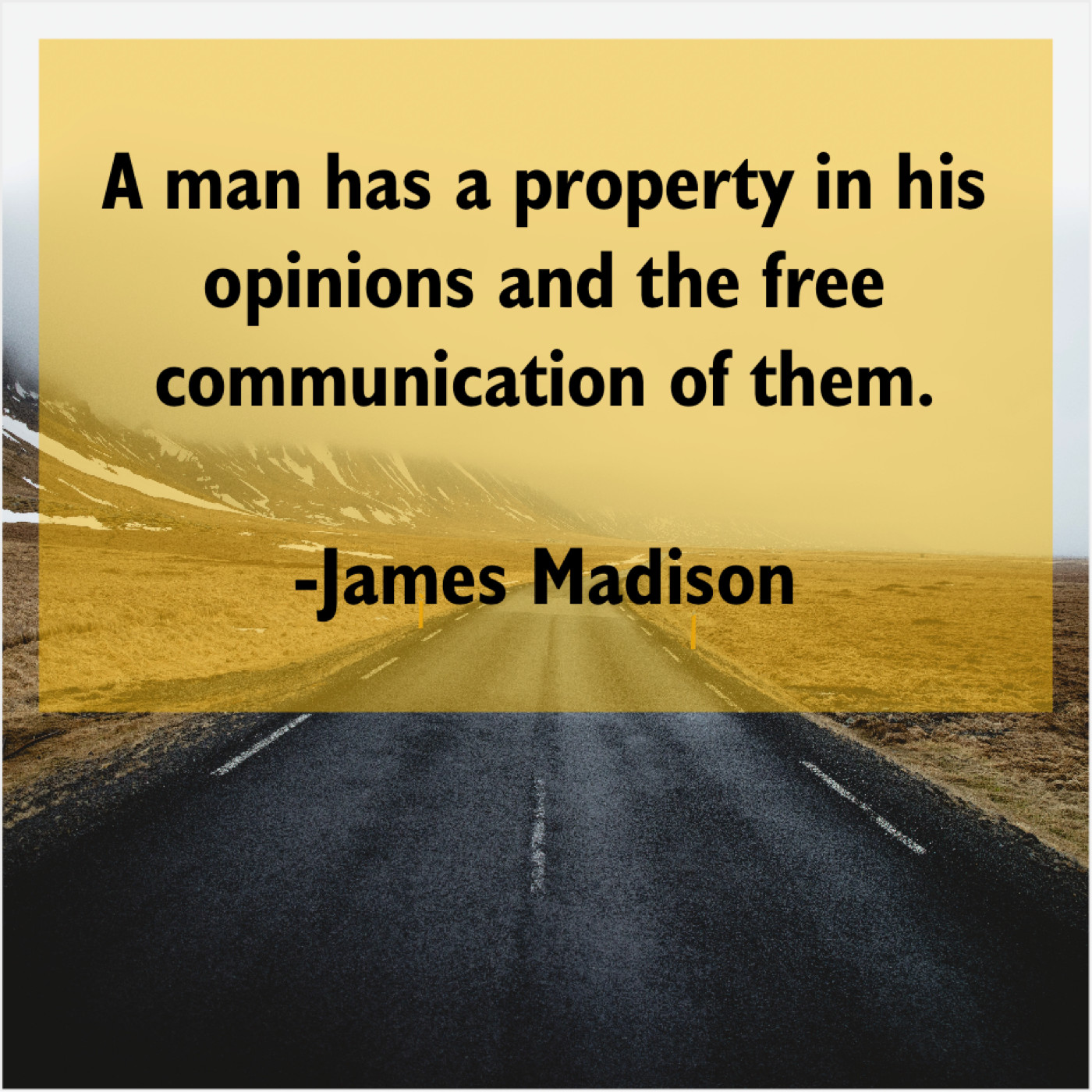 James Madison James Madison – A man has a property… February 16, 2019 admin “A man has a property in his opinions and the free communication of them.”-James Madison