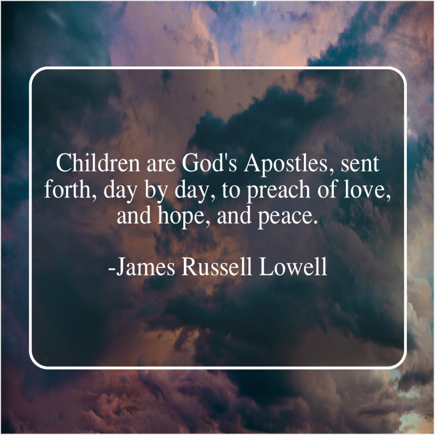 James Russell Lowell James Russell Lowell – Children are God’s Apostles, sent… June 16, 2019 admin “Children are God’s Apostles, sent forth, day by day, to preach of love, and hope, and peace.”-James Russell Lowell