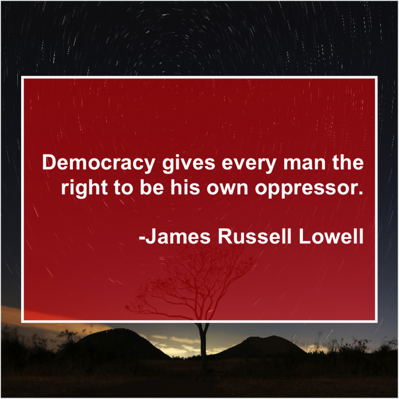 James Russell Lowell James Russell Lowell – Democracy gives every man the… July 24, 2019 admin “Democracy gives every man the right to be his own oppressor.”-James Russell Lowell