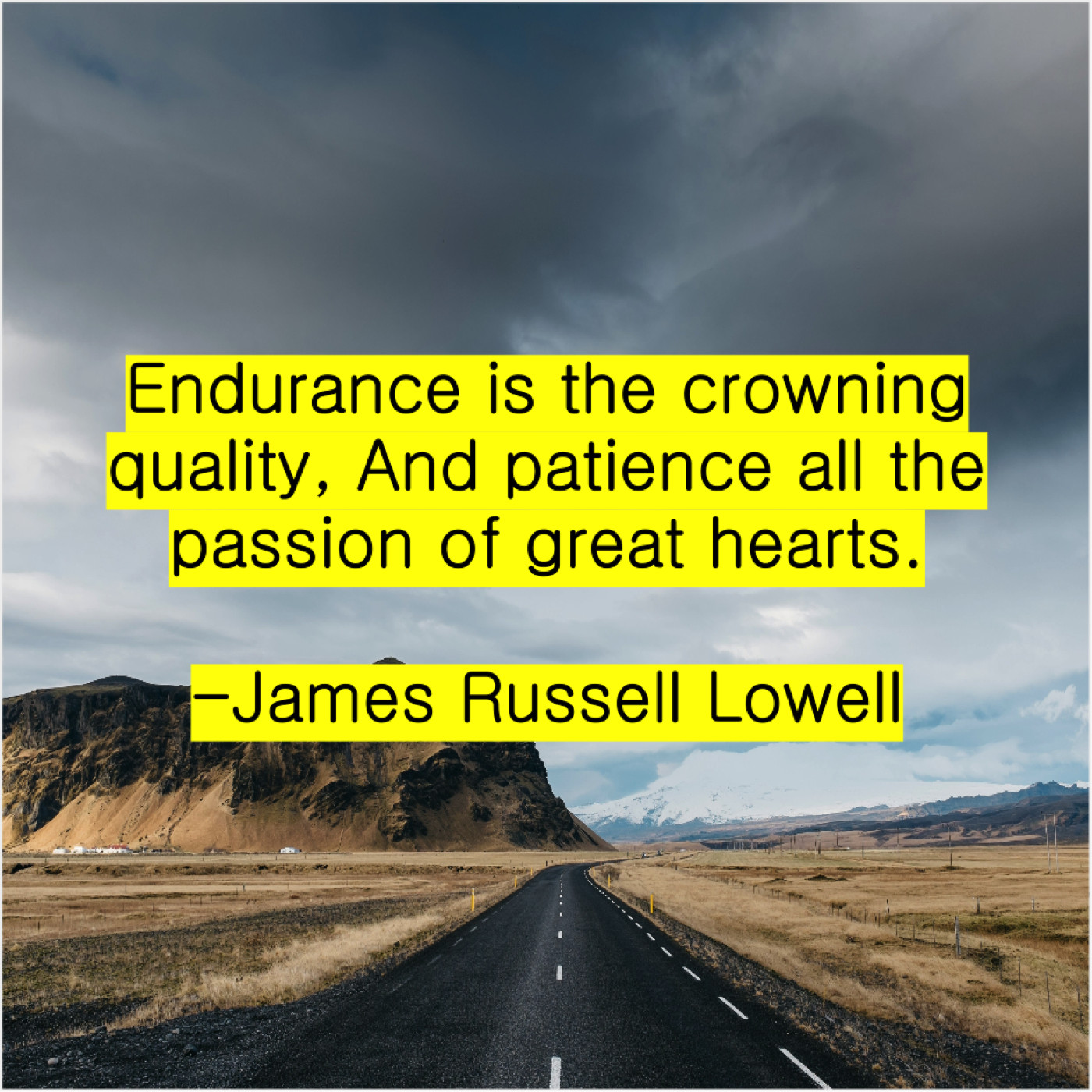 James Russell Lowell James Russell Lowell – Endurance is the crowning quality… September 28, 2019 admin “Endurance is the crowning quality, And patience all the passion of great hearts.”-James Russell Lowell