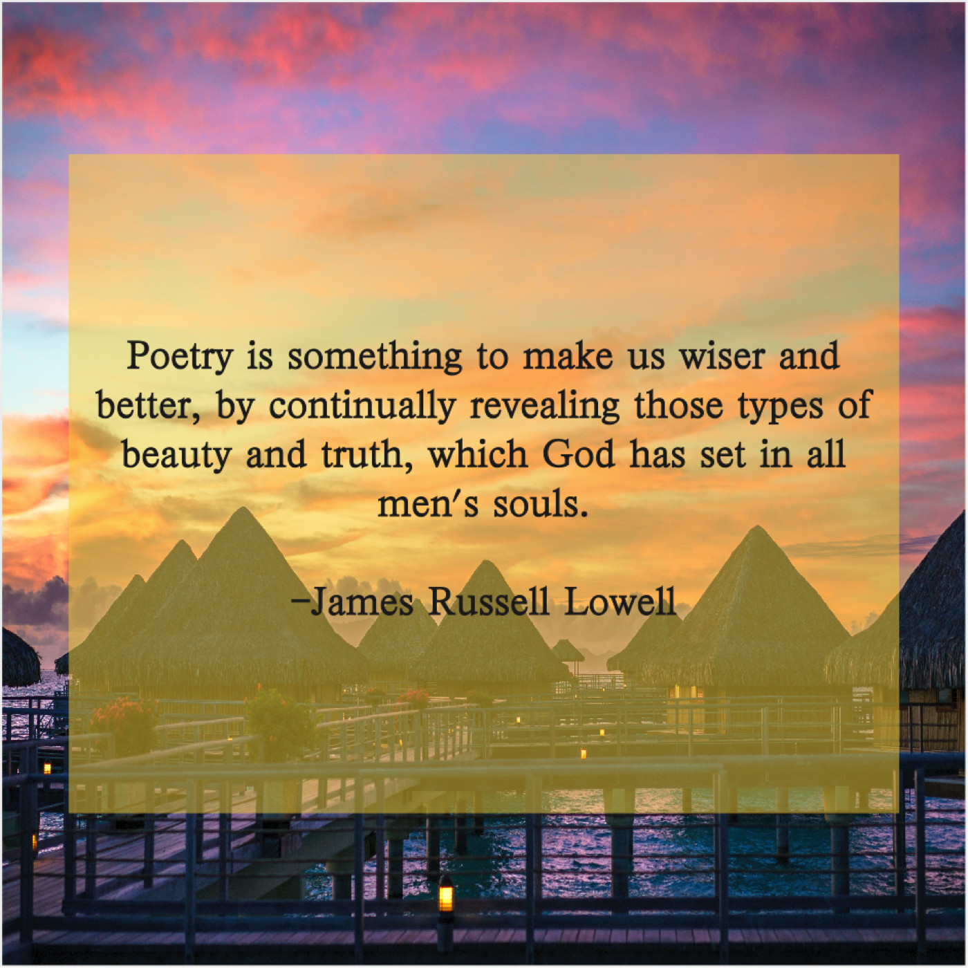 James Russell Lowell James Russell Lowell – Poetry is something to make… September 16, 2019 admin “Poetry is something to make us wiser and better, by continually revealing those types of beauty and truth, which God has set in all men’s souls.”-James Russell Lowell
