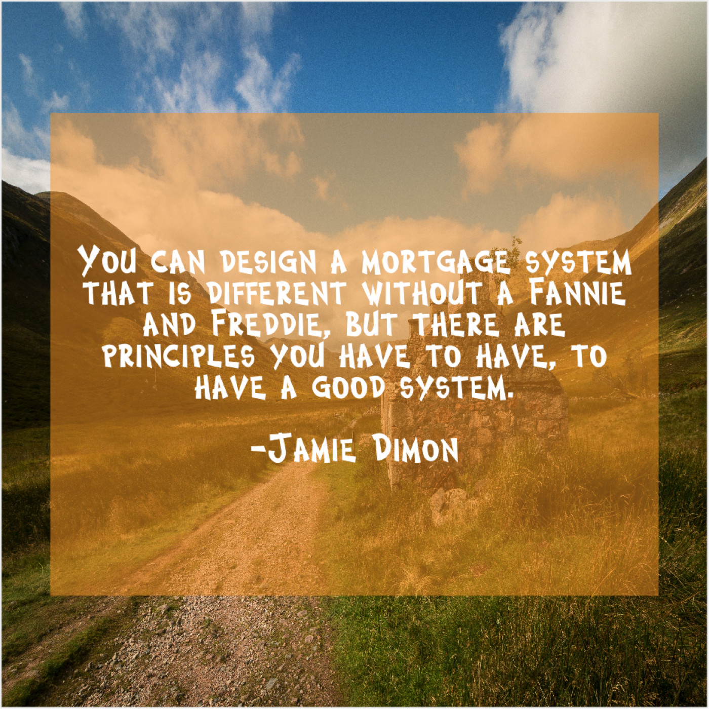 Jamie Dimon Jamie Dimon – You can design a mortgage… December 5, 2018 admin “You can design a mortgage system that is different without a Fannie and Freddie, but there are principles you have to have, to have a good system.”-Jamie Dimon