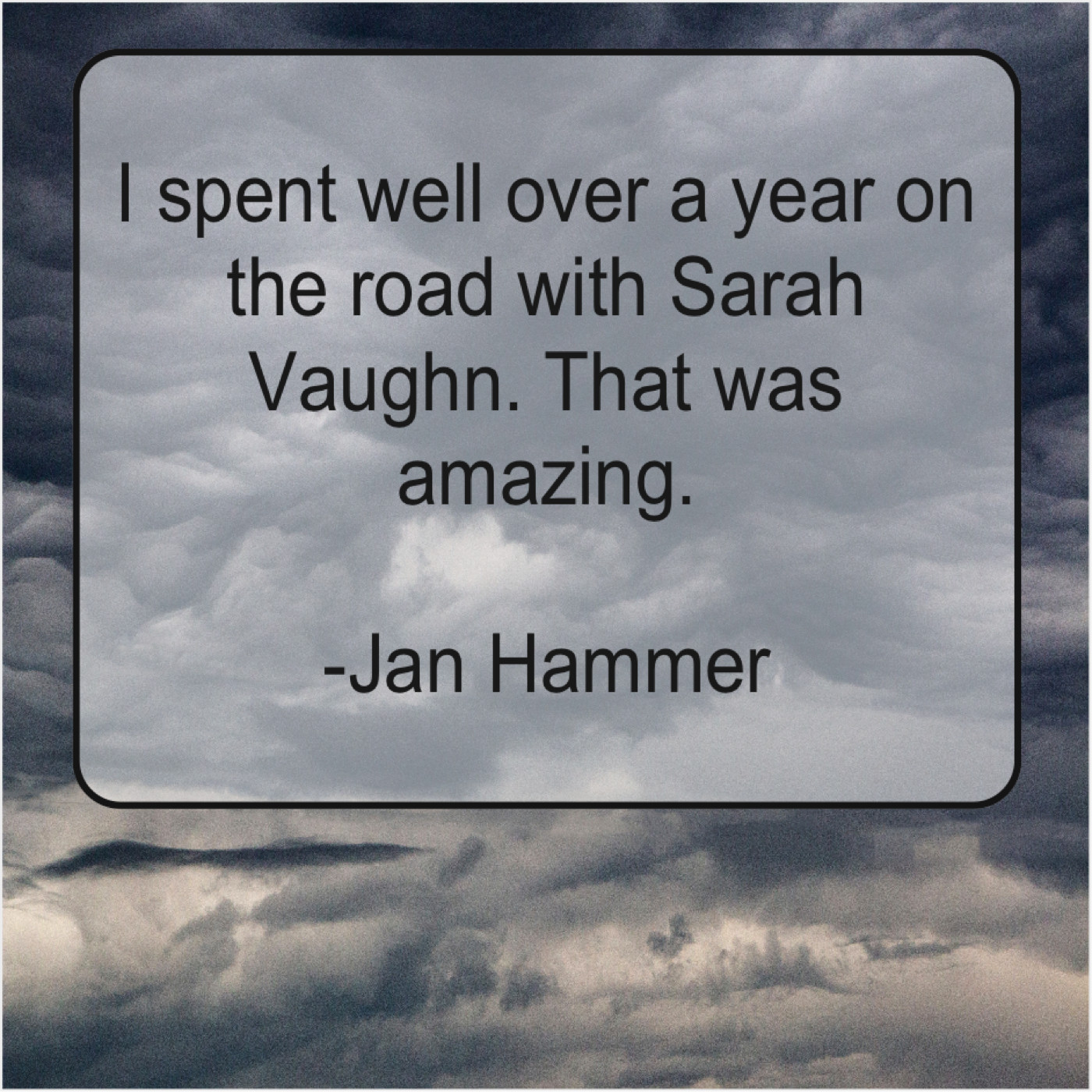 Jan Hammer Jan Hammer – I spent well over a… December 29, 2018 admin “I spent well over a year on the road with Sarah Vaughn. That was amazing.”-Jan Hammer