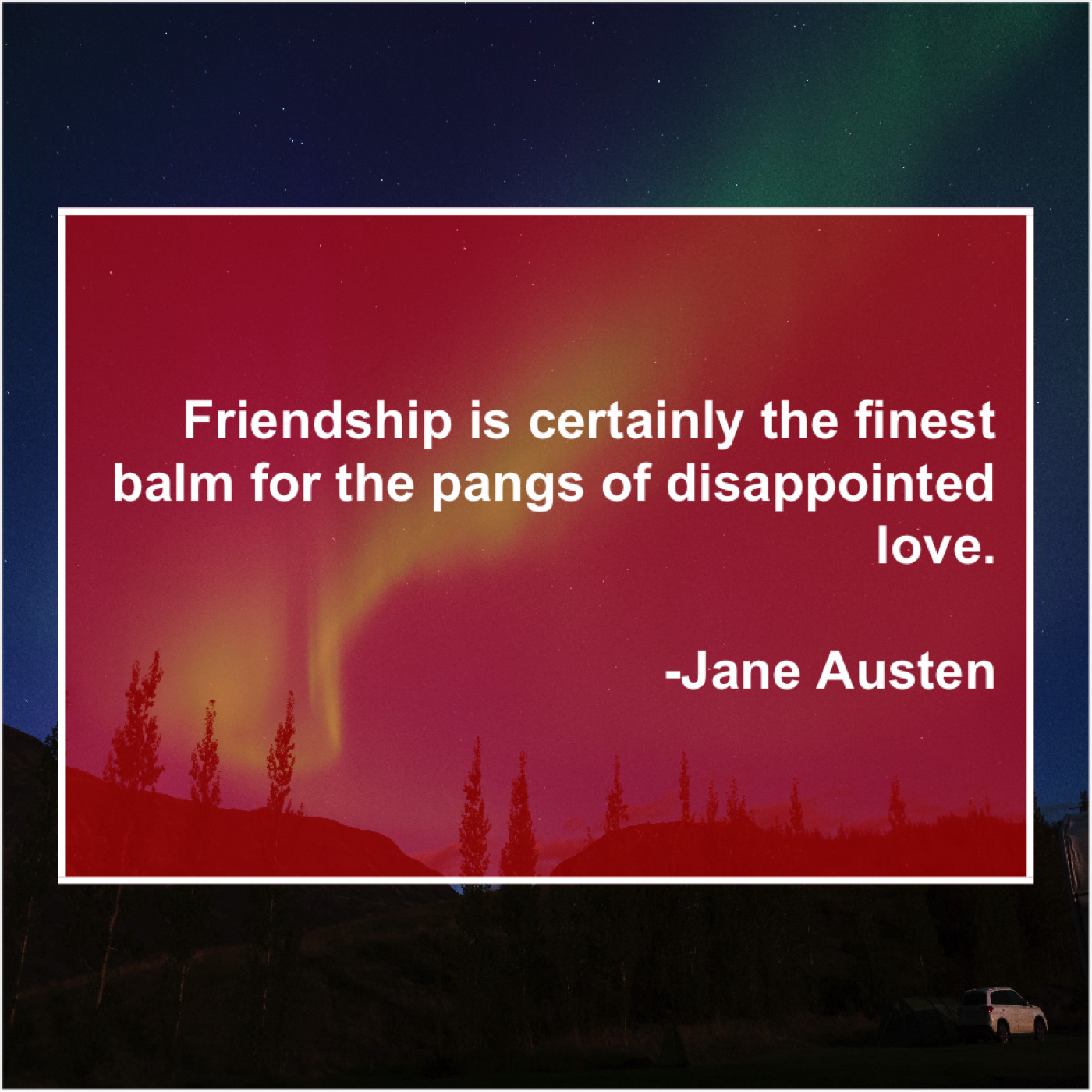 “Friendship is certainly the finest balm for the pangs of disappointed love.”