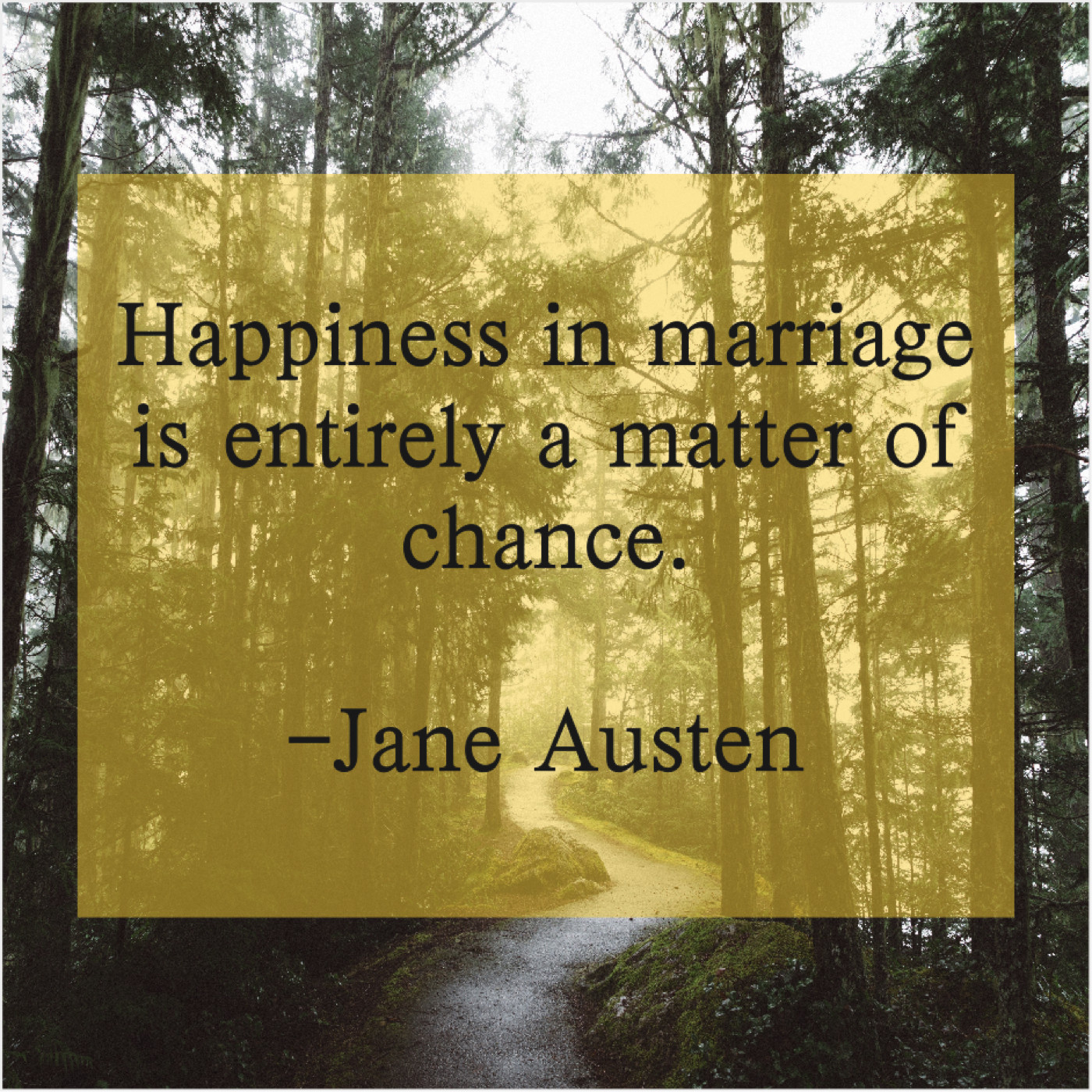 Jane Austen Jane Austen – Happiness in marriage is entirely… September 29, 2019 admin “Happiness in marriage is entirely a matter of chance.”-Jane Austen