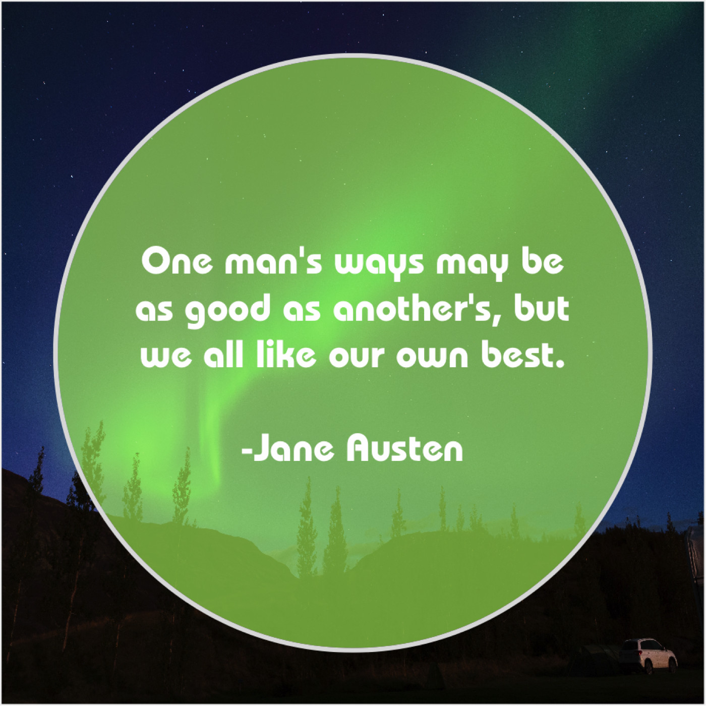 Jane Austen Jane Austen – One man’s ways may be… February 13, 2019 admin “One man’s ways may be as good as another’s, but we all like our own best.”-Jane Austen