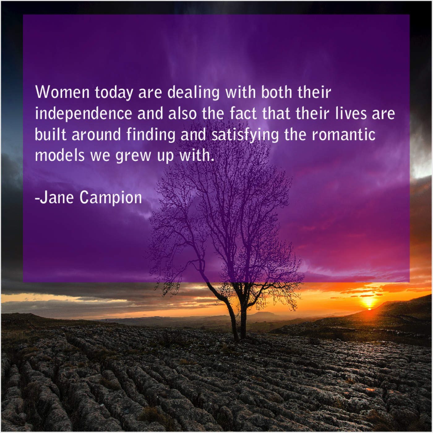 Jane Campion Jane Campion – Women today are dealing with… May 12, 2019 admin “Women today are dealing with both their independence and also the fact that their lives are built around finding and satisfying the romantic models we grew up with.”-Jane Campion