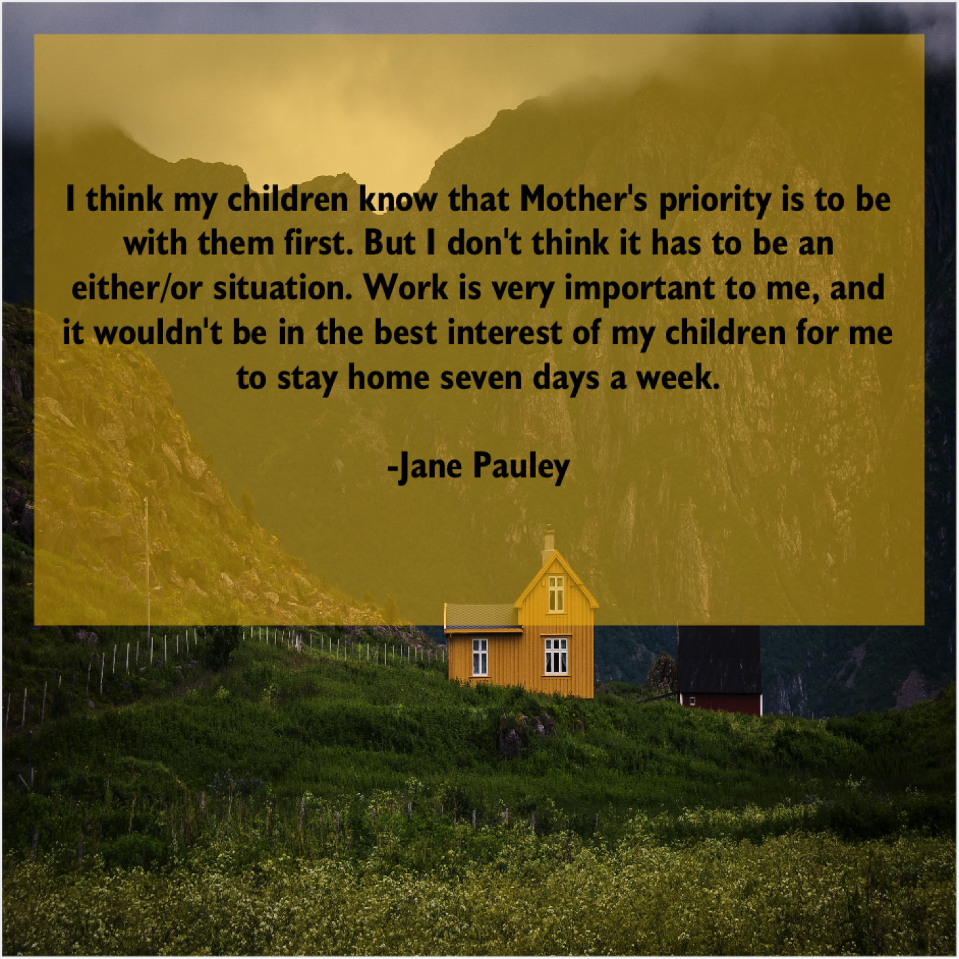 “I think my children know that Mother’s priority is to be with them first. But I don’t think it has to be an either/or situation. Work is very important to me, and it wouldn’t be in the best interest of my children for me to stay home seven days a week.”